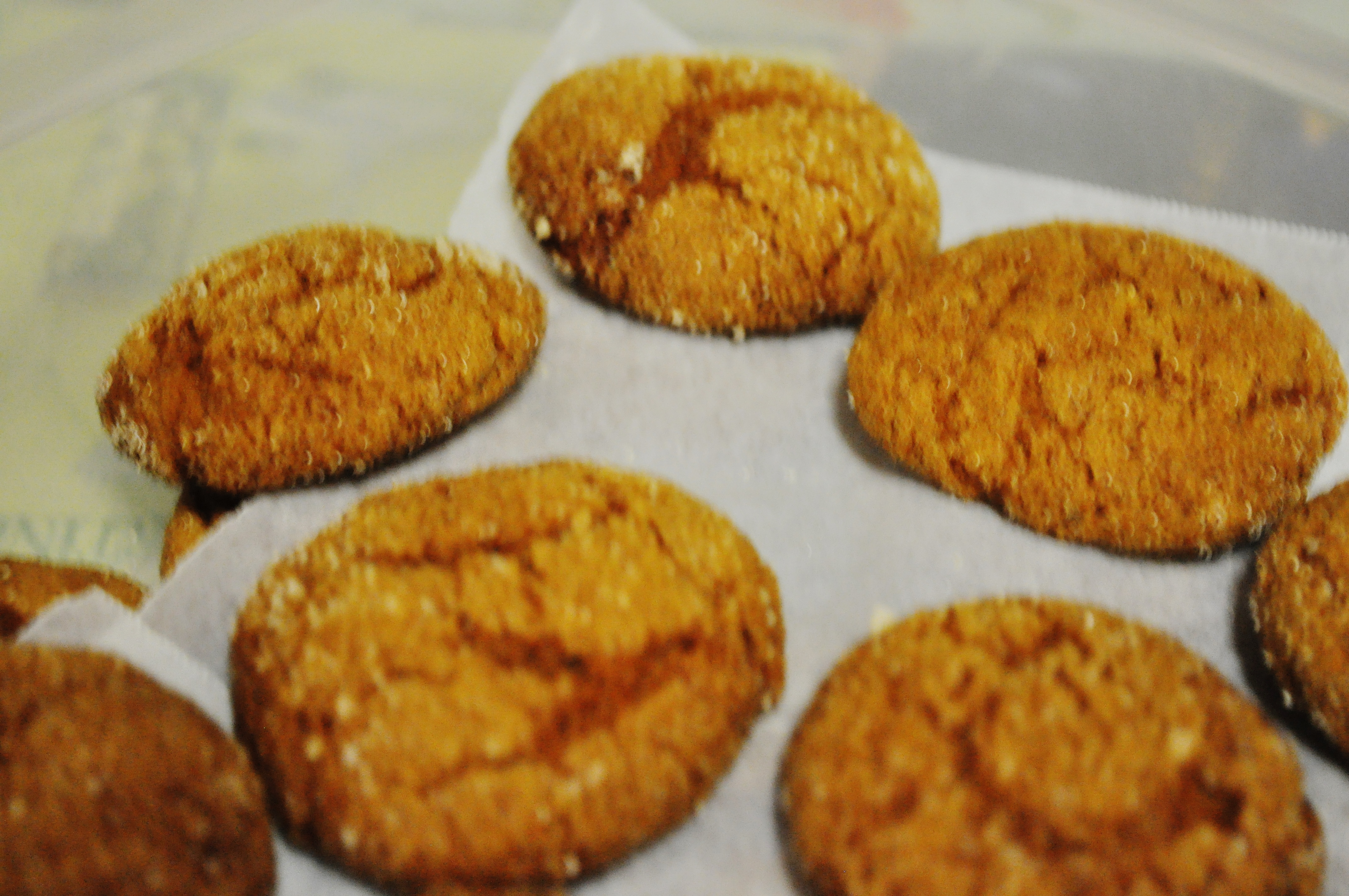 When you are ready to bake, preheat oven to 350° F. Line your baking sheets with parchment paper. Place the cane sugar in a small bowl or on a plate. Roll tablespoon-sized balls of dough in the cane sugar until well coated and place on prepared baking sheets, about 2 inches apart. Bake for 10–12 minutes, or until cookies look cracked and set at the edges. I put two sheets at a time in the oven. Top and bottom third.