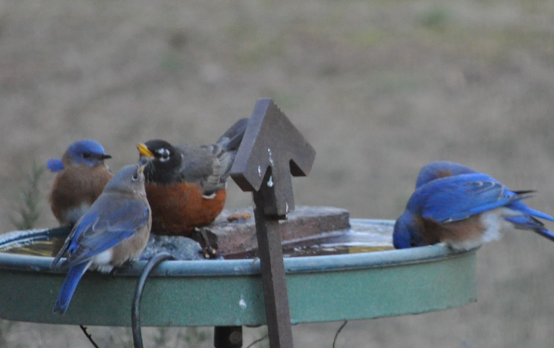 And happily for me, the four bluebirds that came for a drink from our heated bird bath.