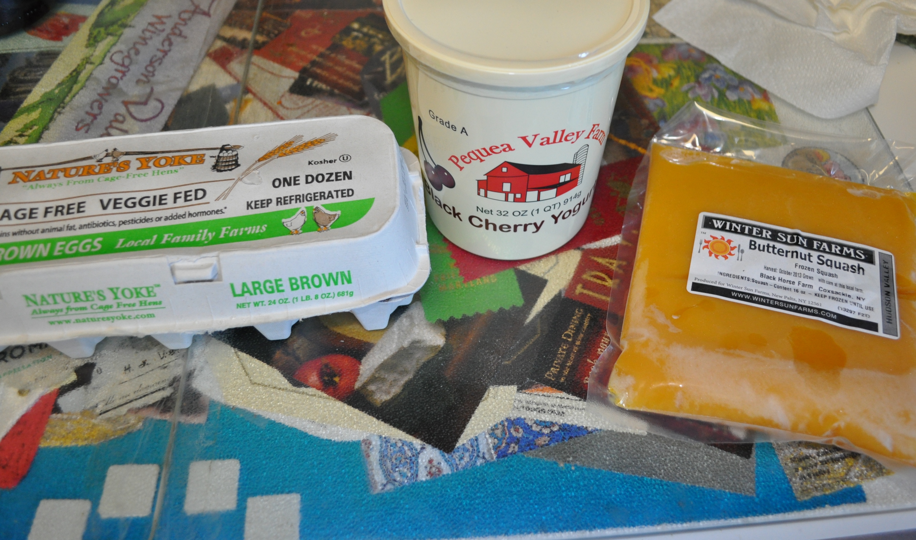 Eggs. An Individual Quick Frozen (IQF) butternut squash puree. I am thinking hummus maybe, or lasagna to use more of those lovely Pappardelle pepper lasagna noodles bought at Secolari the other day.