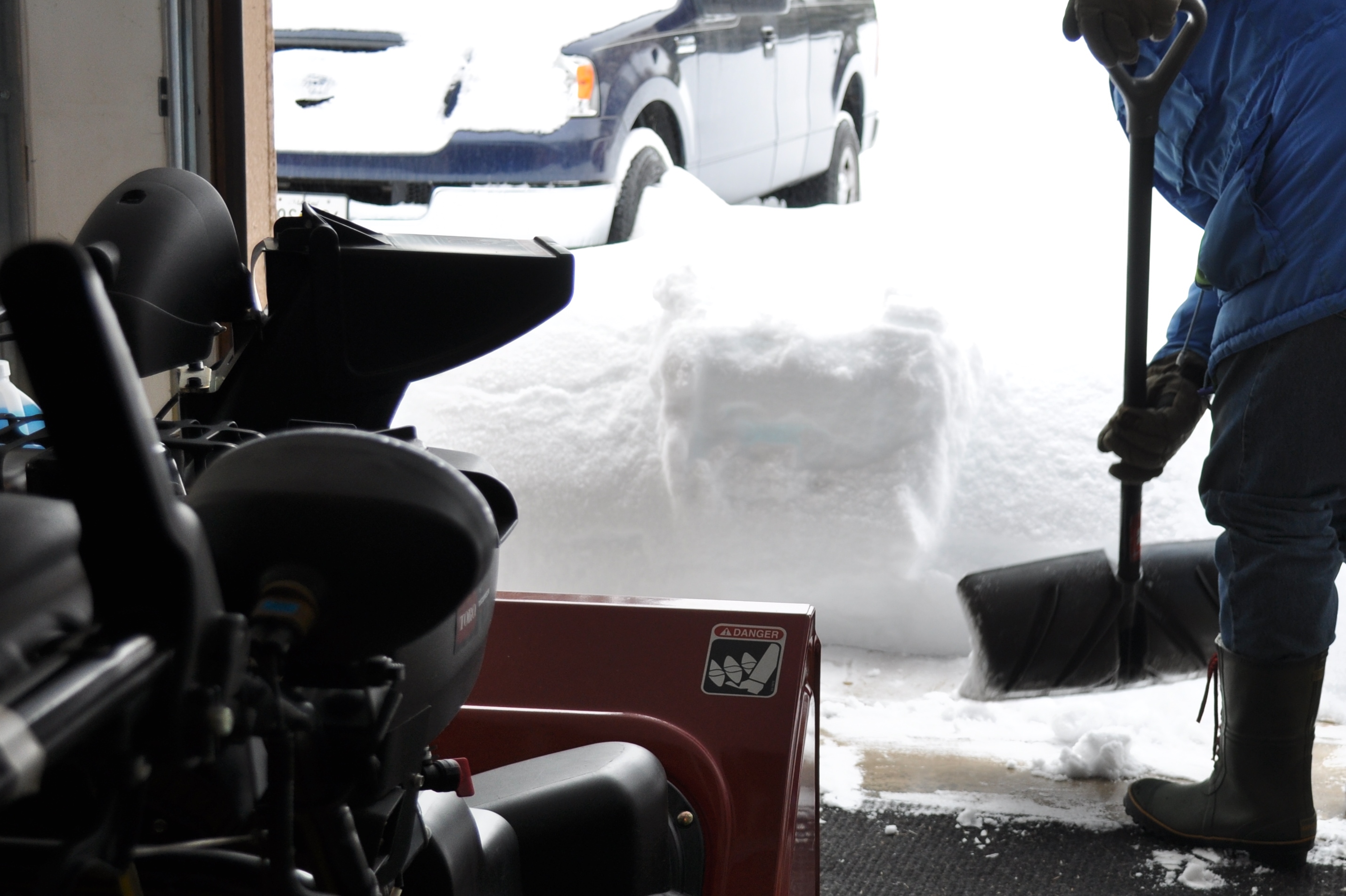 Getting the snow away from the garage to get the snow thrower going. Thankfully, our neighbor’s son assisted with their ATV to clear part of the driveway.