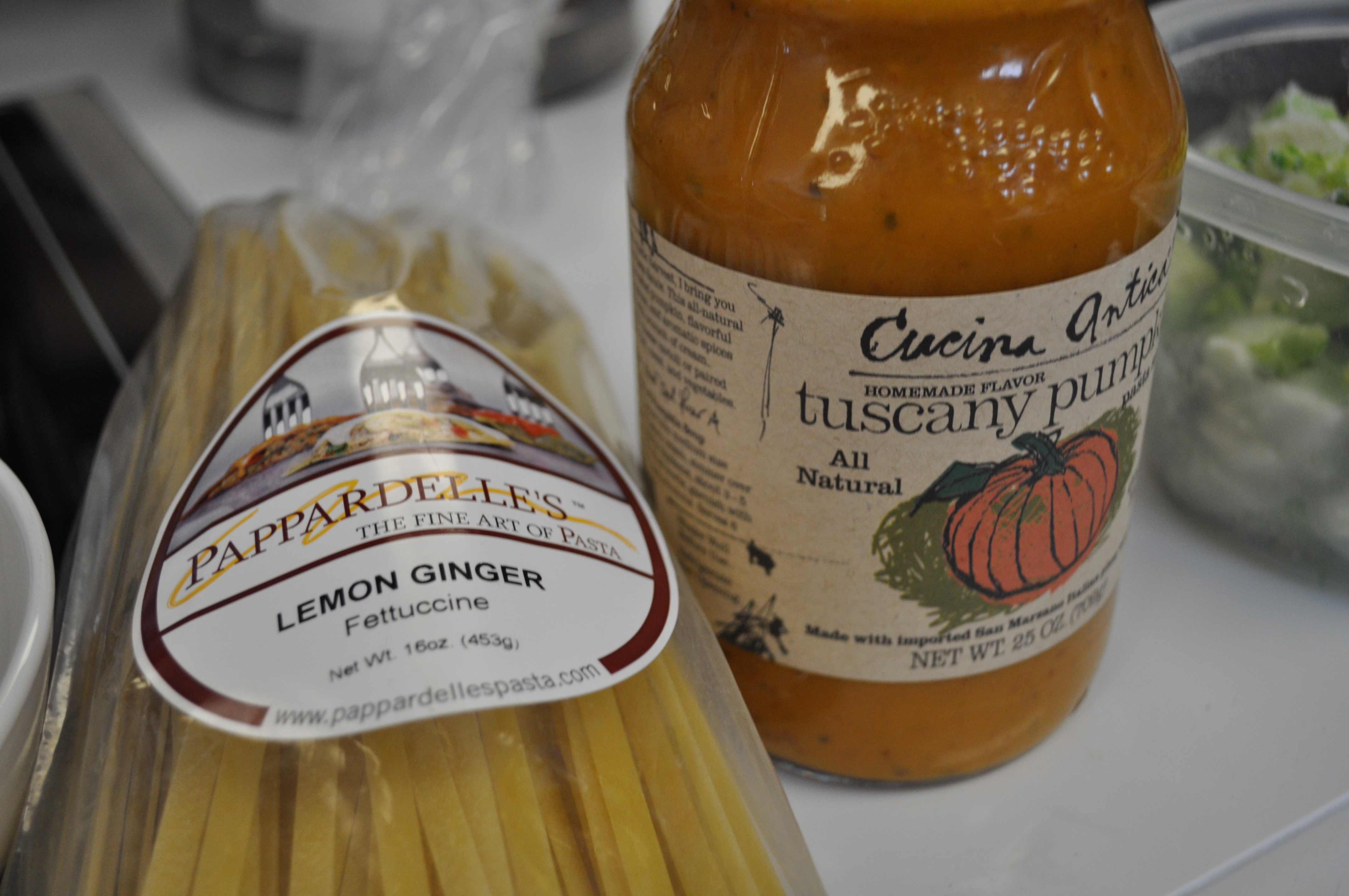 An interesting pairing tonight. I found a unique pasta sauce at Costco. A Tuscany pumpkin sauce. From Cucina Antica.