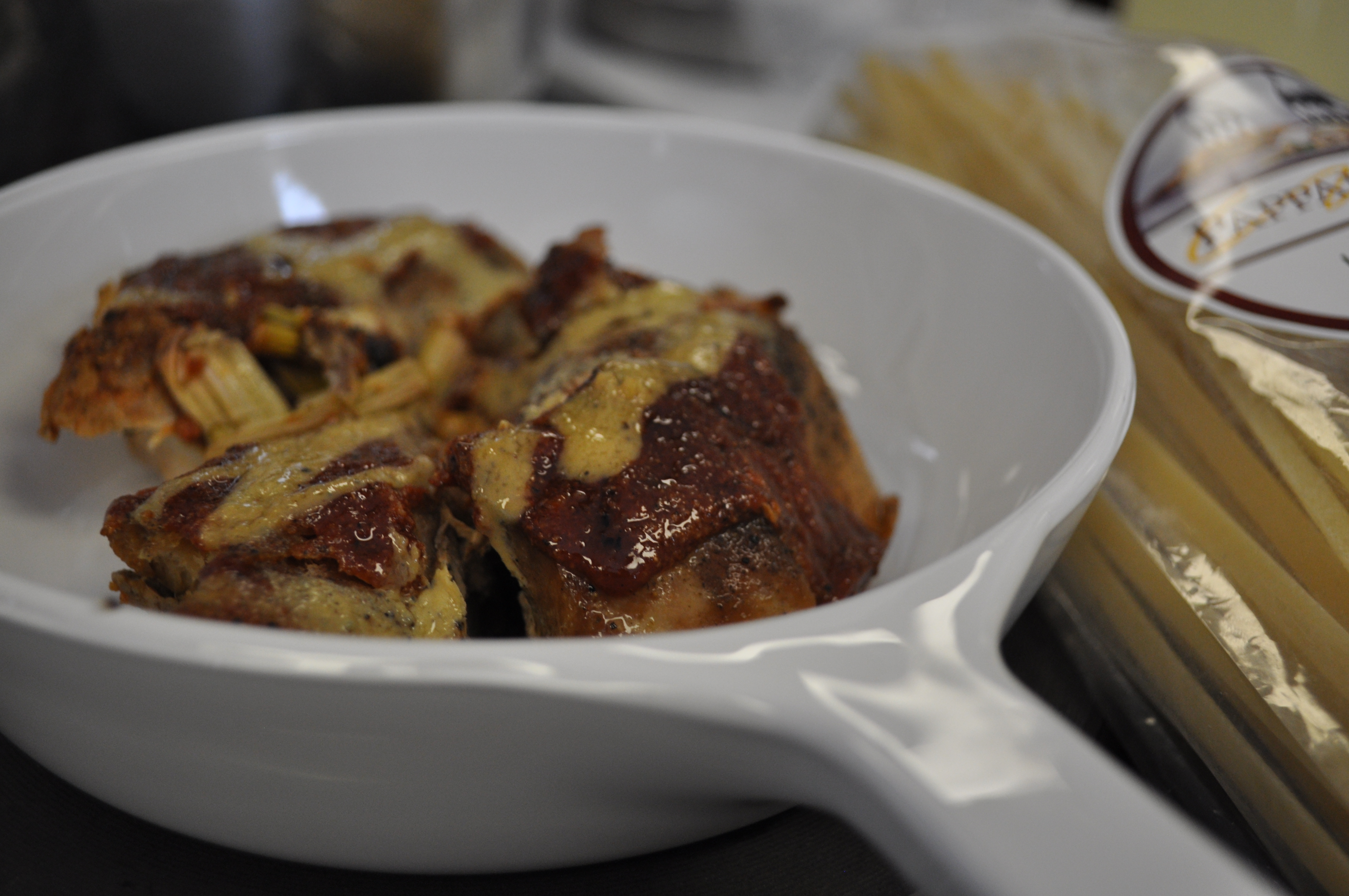These ribs came from my Friends and Farms basket a few weeks back. Slow cooked in the oven, under foil with salt and pepper and in a bath of white wine. Finished with a glaze of Korean dipping sauce mixed with honey mustard.