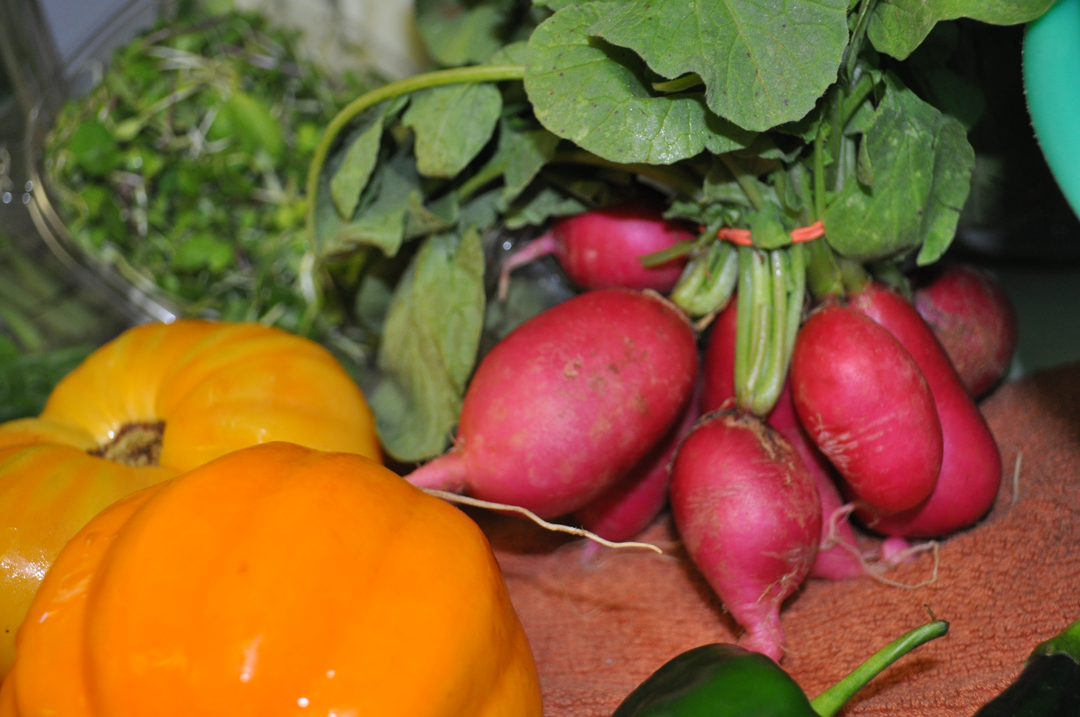 The types of veggies we find in our CSA baskets. Like the turnip greens we are getting tomorrow from Friends and Farms. Or those collards from last week.