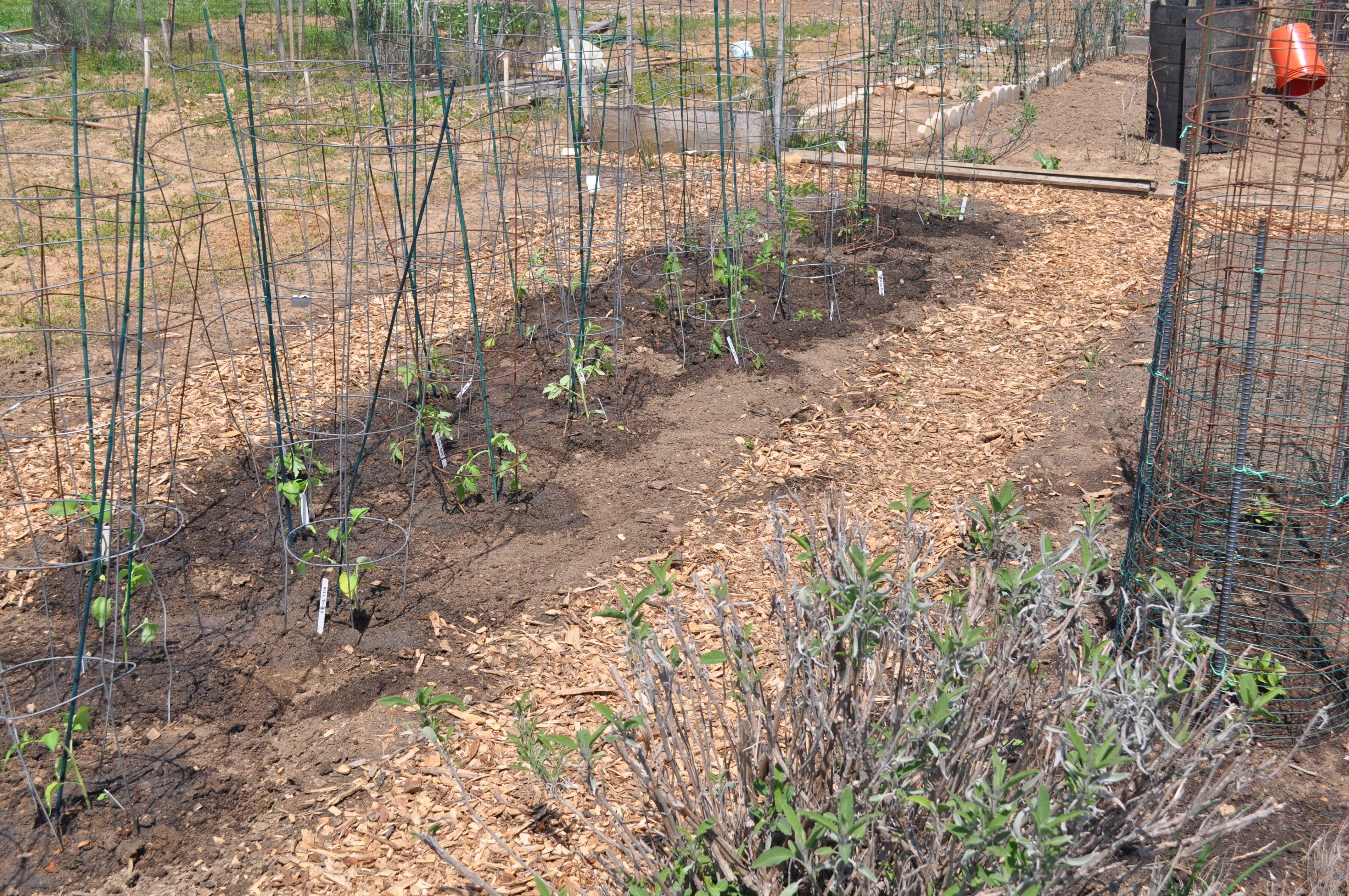 Tomatoes planted today. Earlier than ever before, but the temperatures are saying that we need to do this. I planted 26 plants at the Conservancy and I am putting in four here at home (praying for enough sun). At least I could run out and pick a few supersweet 100s and Early Girls, if the site gets enough sun.