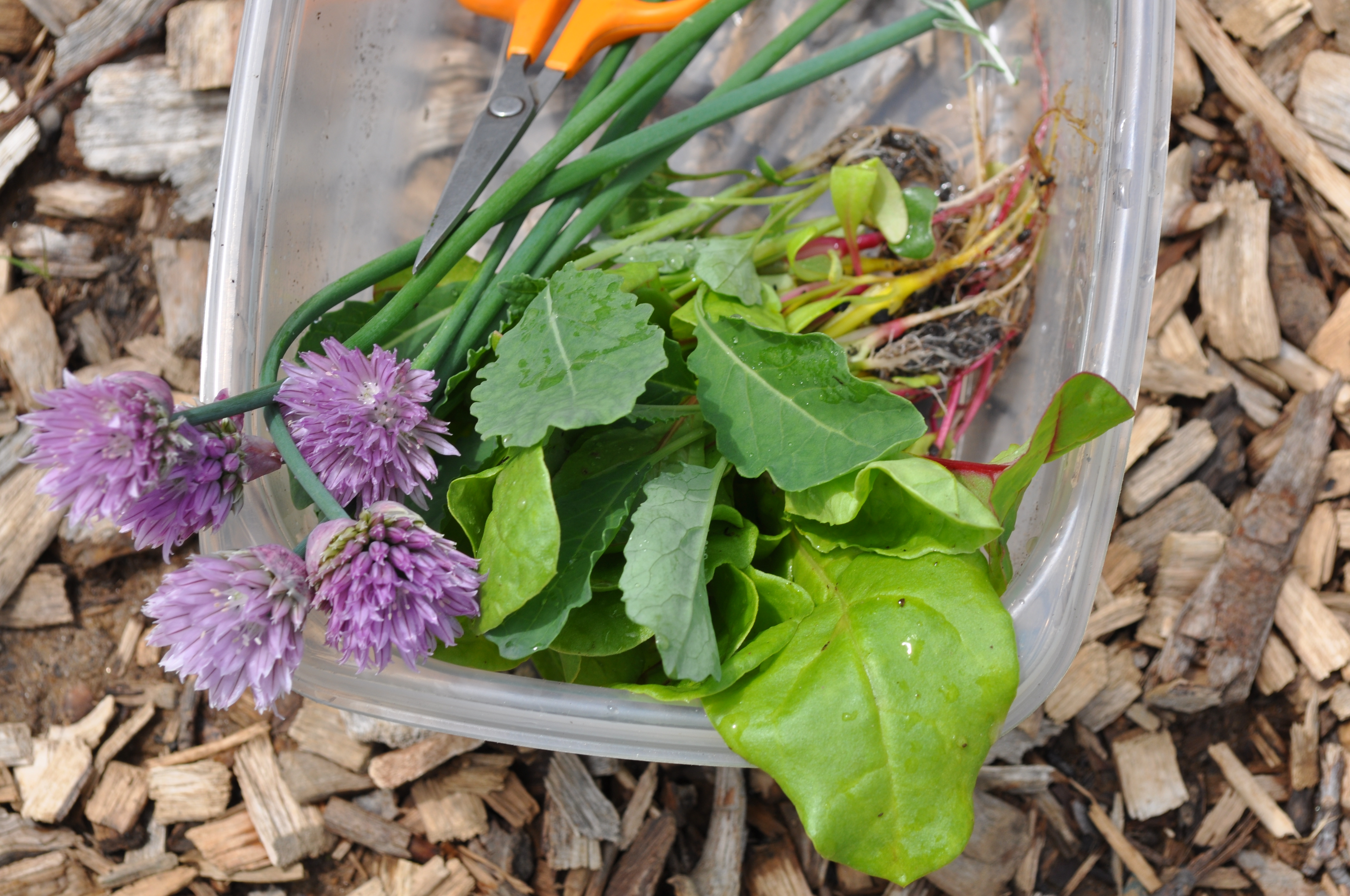 It’s always exciting when we switch from planting to harvesting. This year I am keeping a record of what we get, from the multiple sites where I have vegetables and herbs growing.