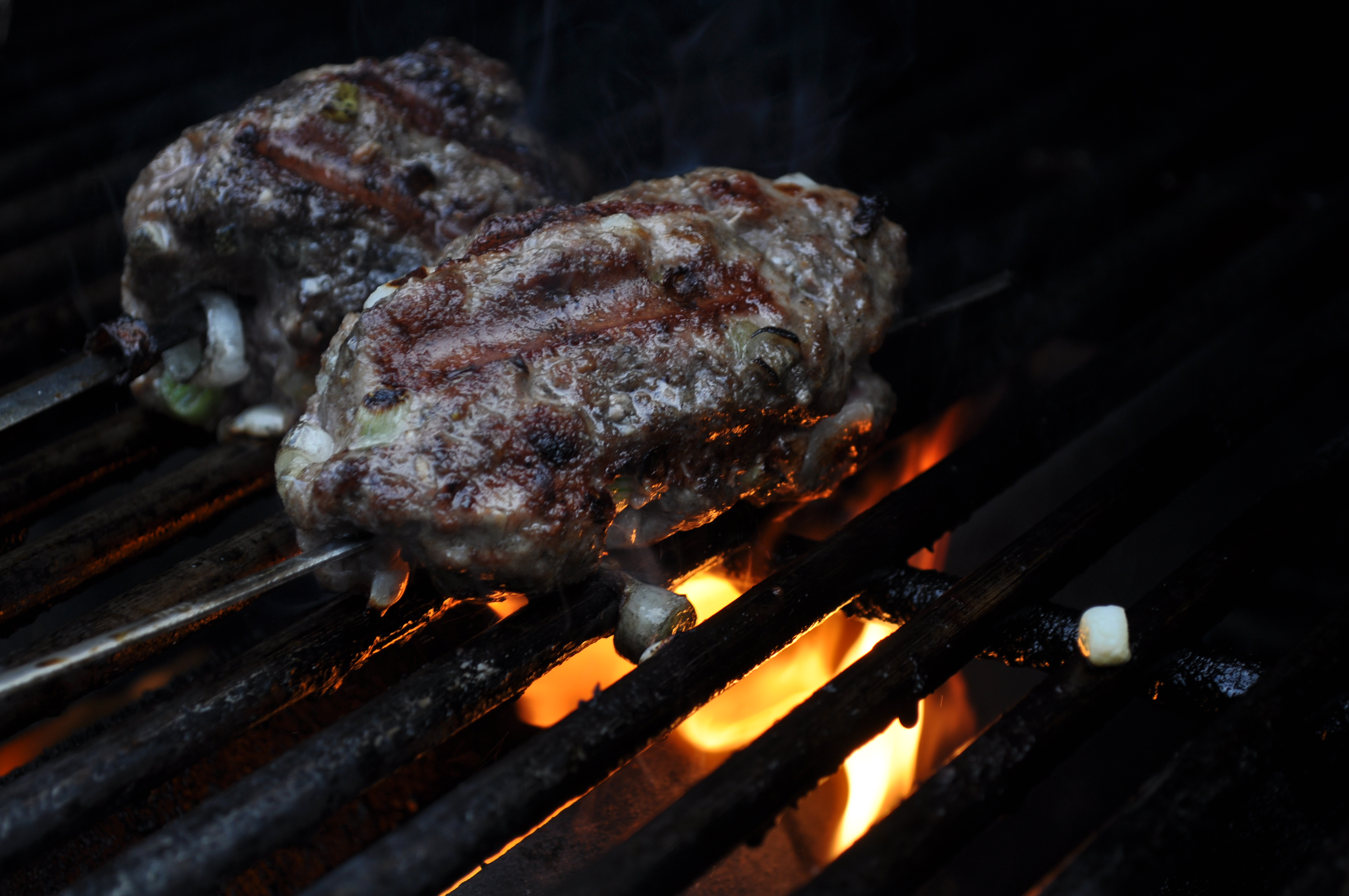Made a couple kofta. One pound of England Acres lamb. Handful of scallions from the garden. Garam masala, garlic powder, salt and pepper. Olive oil. Perfect with tzatziki.