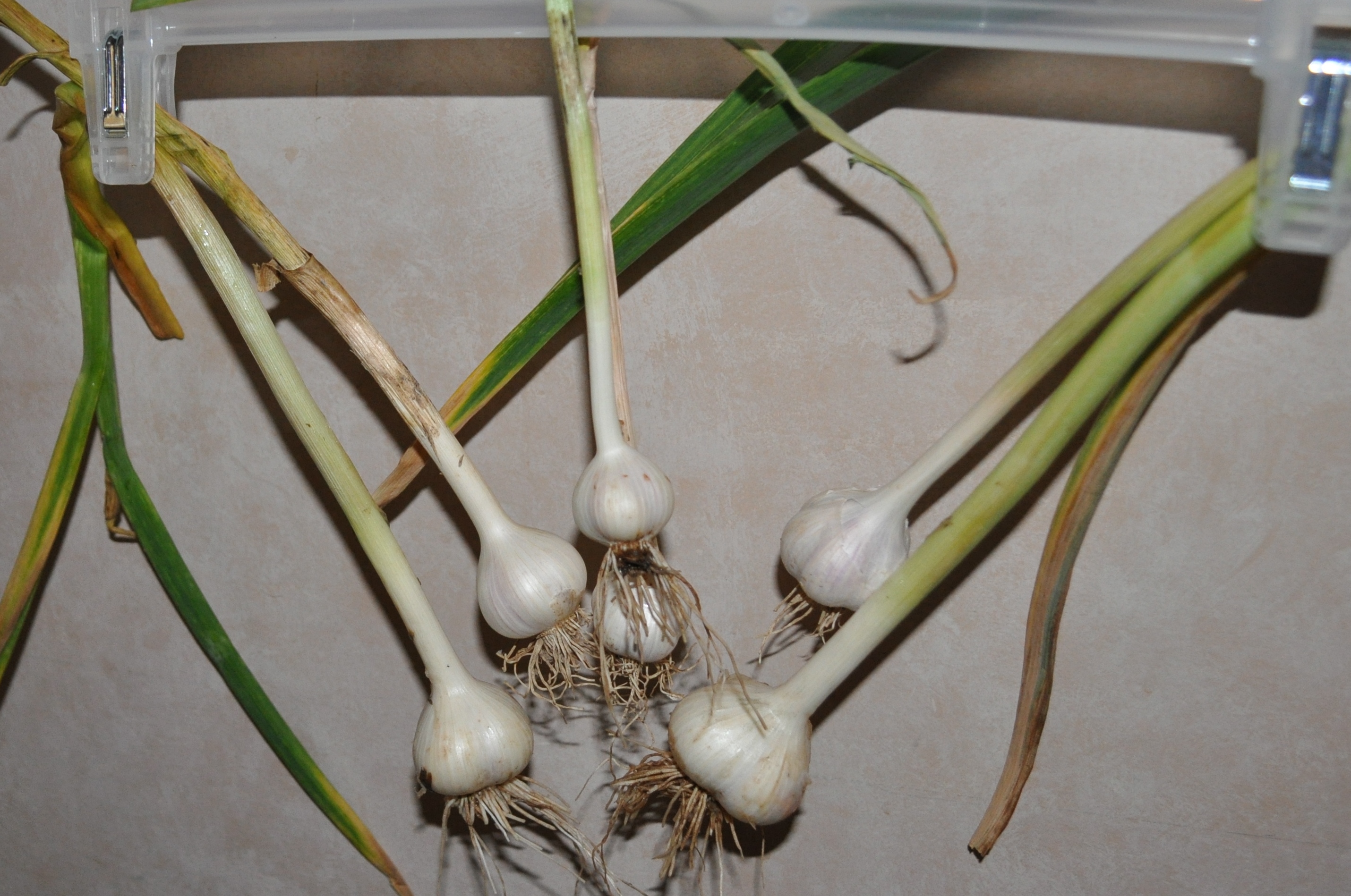 As for the eight good heads of garlic, they are hanging in the dark cool powder room off the mud room.
