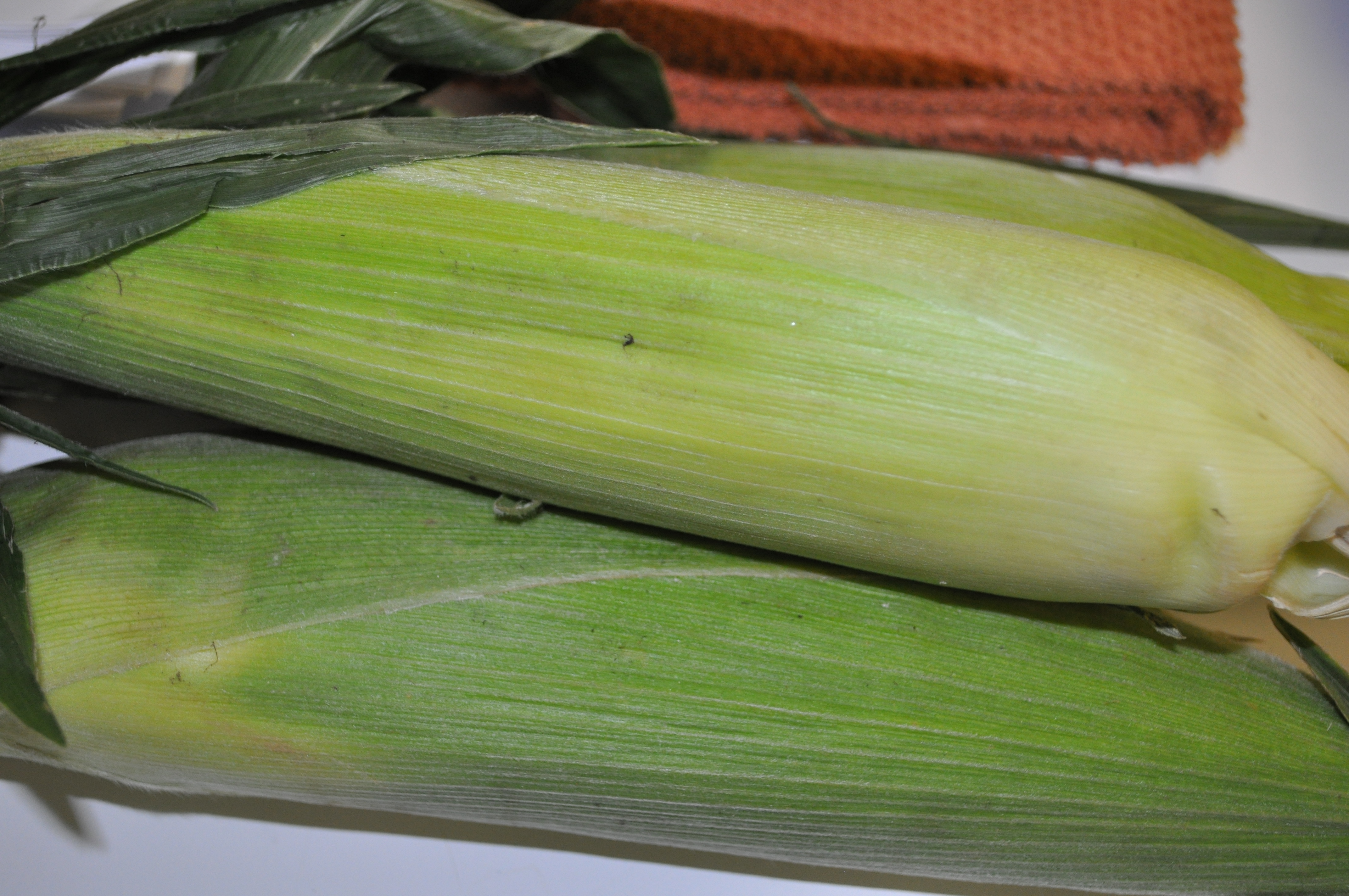 Three ears of sweet corn from the swap box. You can never have too much sweet corn.