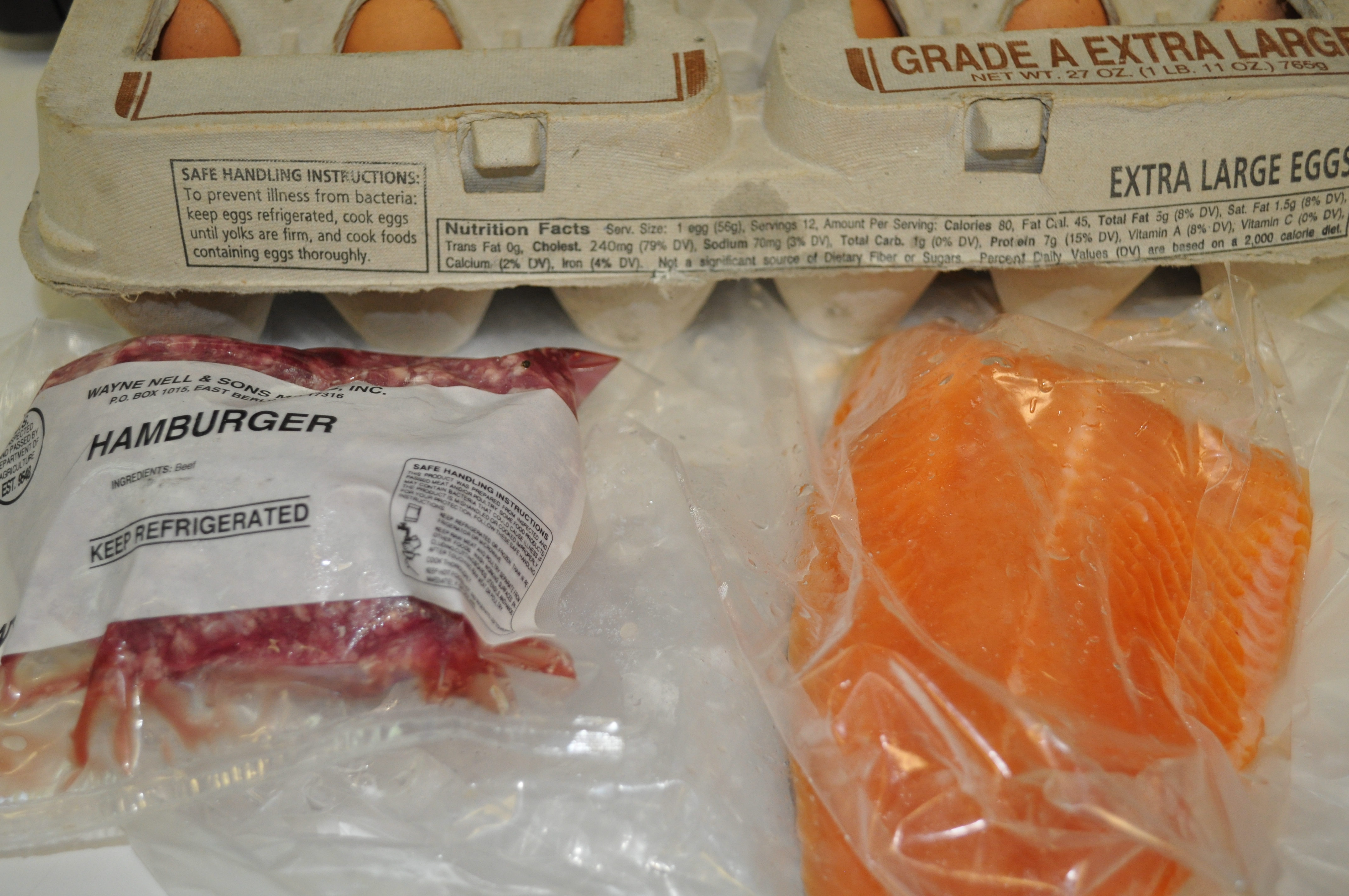 One dozen eggs. Ground beef. That lovely Arctic char.
