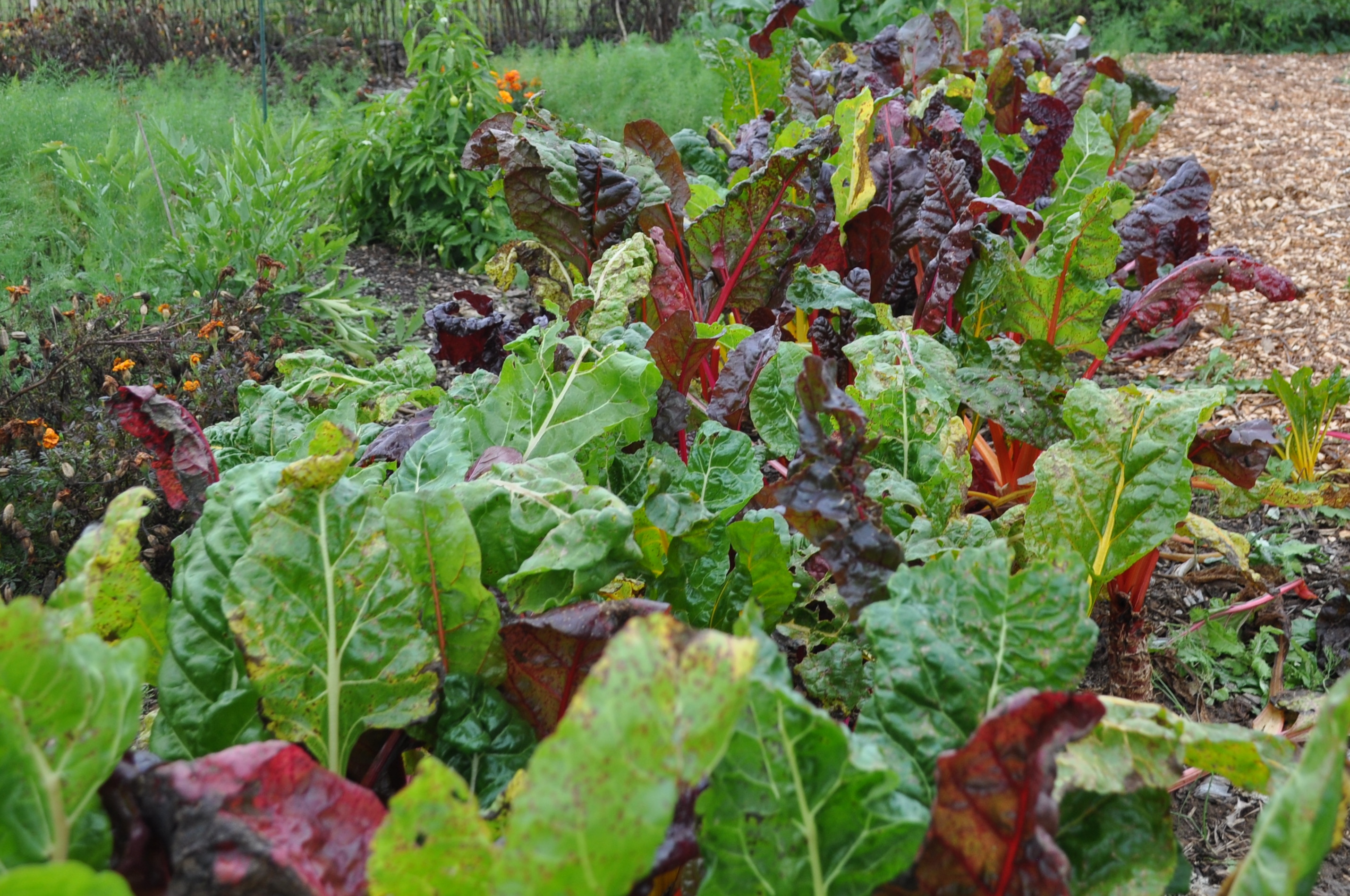 Like these collard greens. We are getting large bags full of these leaves every single week. And, they still keep putting out new growth. The other amazing producer is chard.