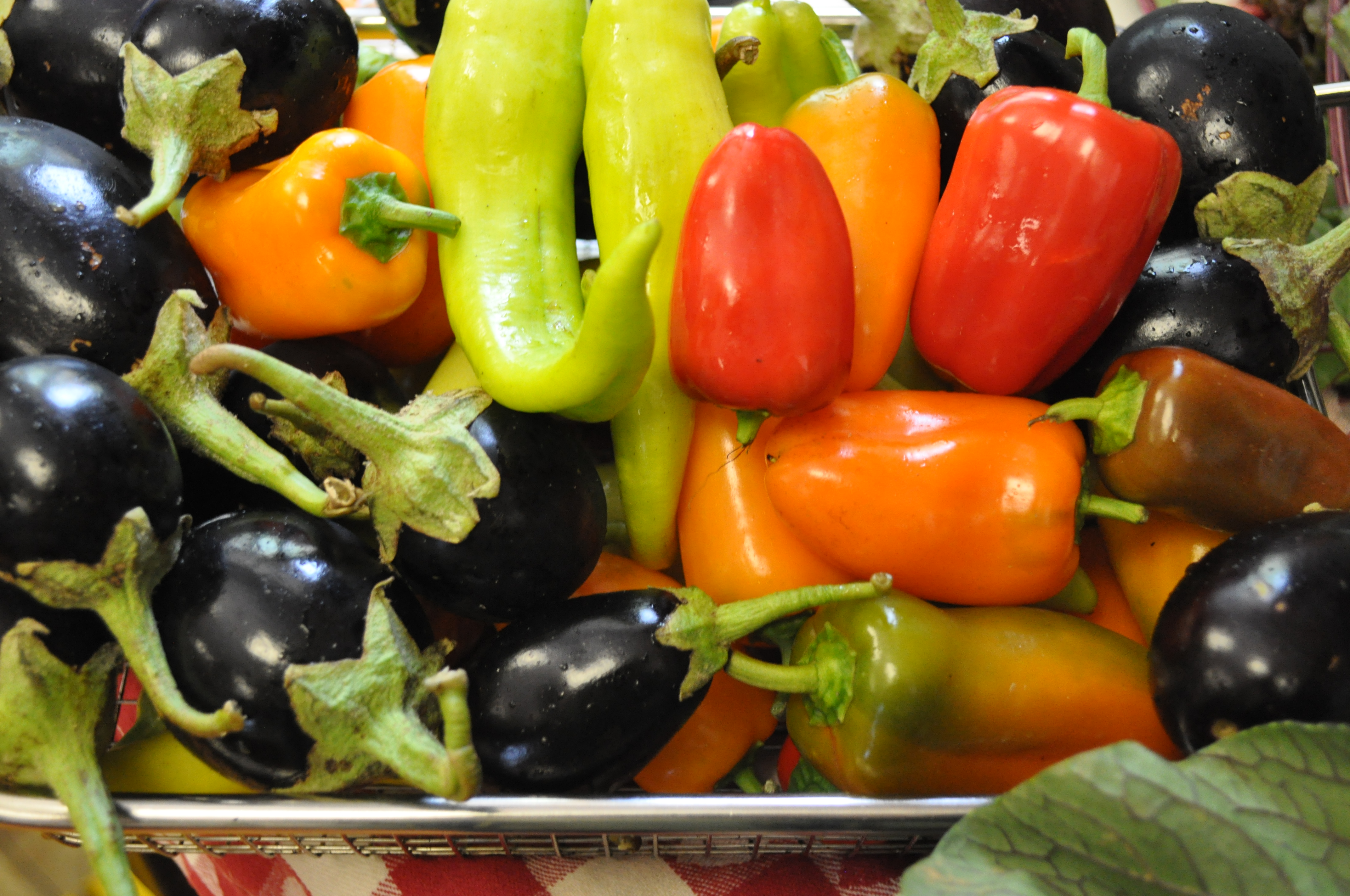This week’s basket was fun to discover. I just need to think about what to do with all those peppers and eggplants. More tomorrow, after I ponder a strategy.