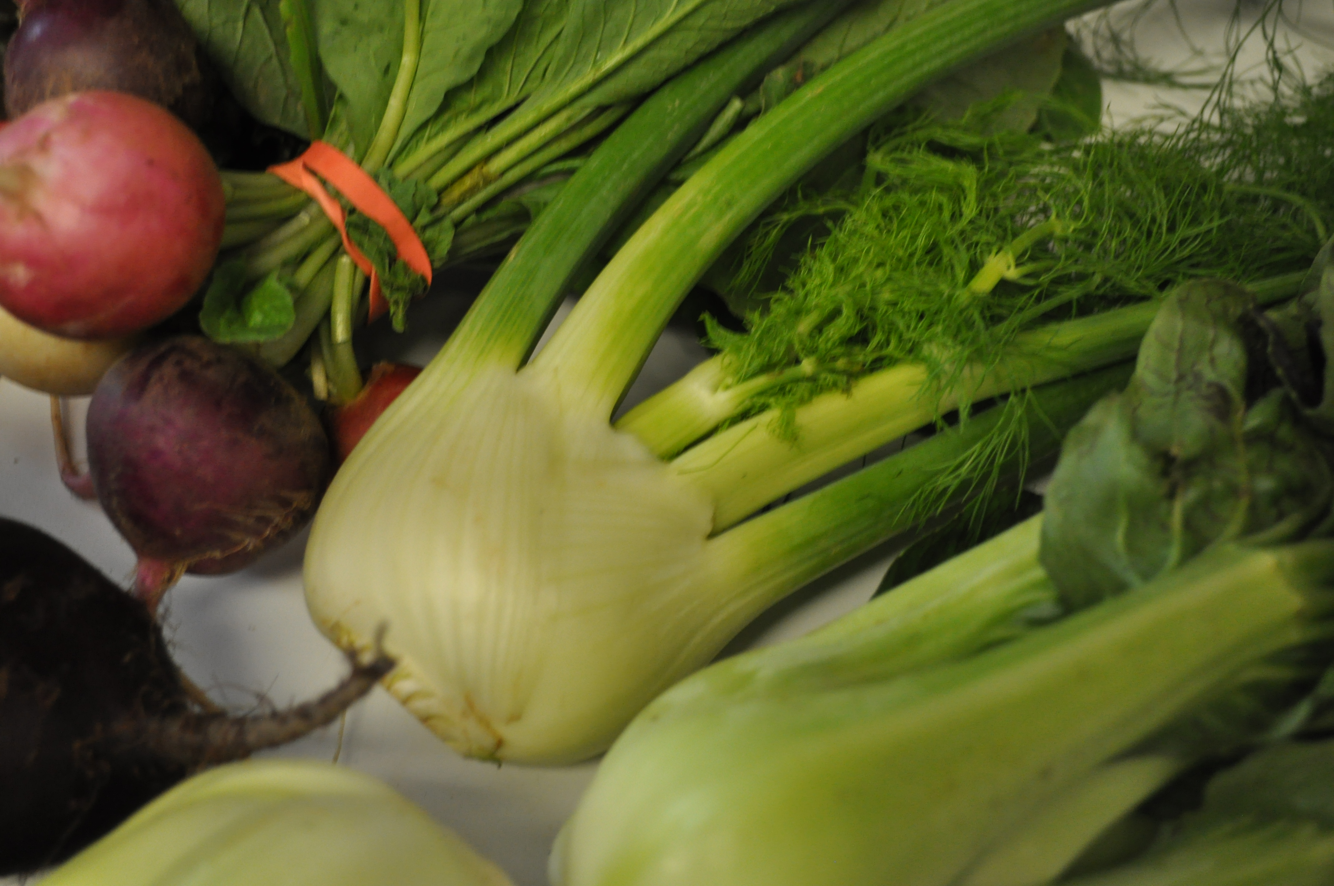 How about baby fennel and baby red bok choy? Two other items this week in my CSA basket. Let’s move on to fruit.