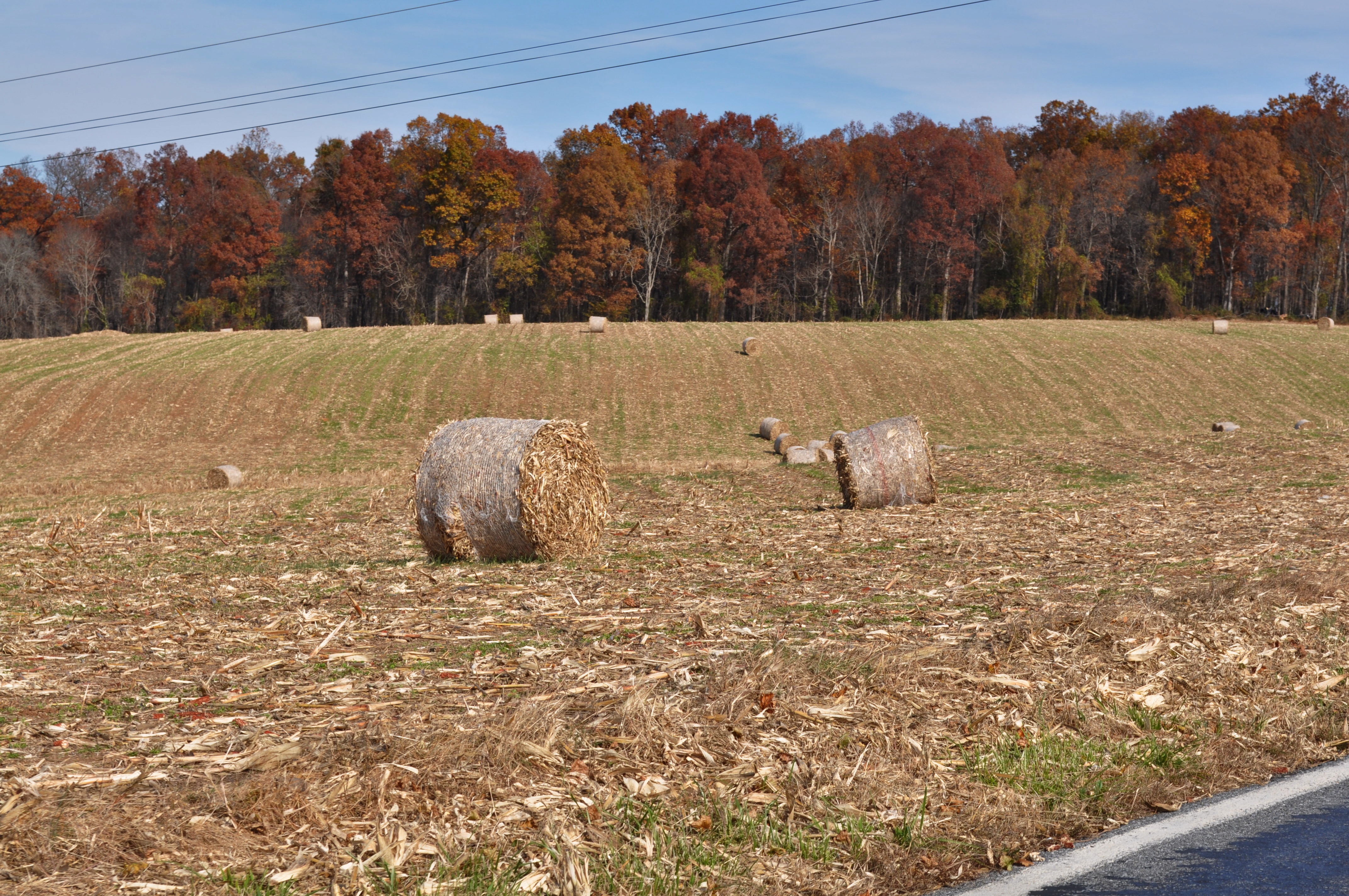 As for hay bales, it looks like many of the farms have their hay cut and baled for collection.