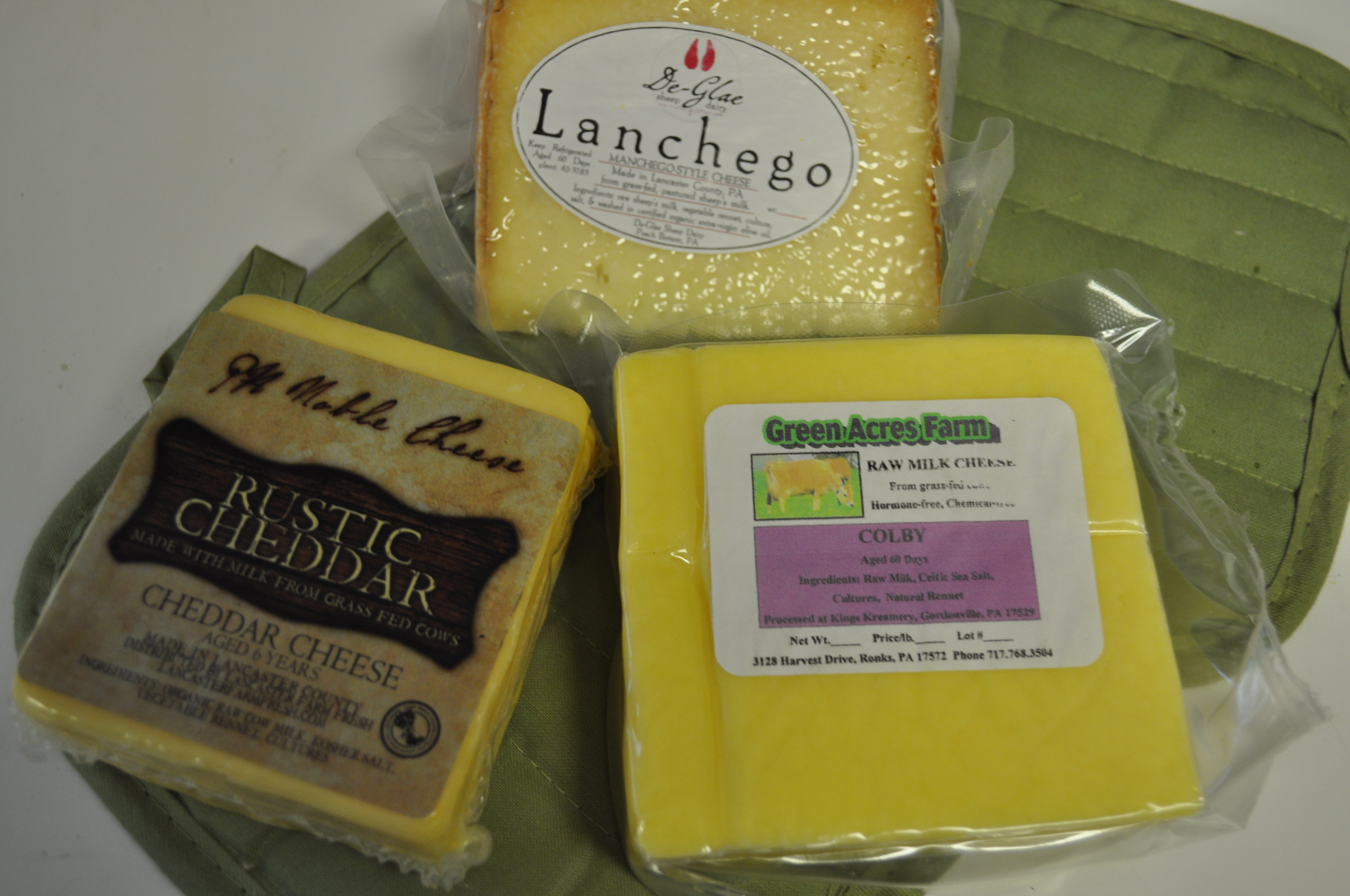 Biweekly in the fall. That stinky funky six year aged cheddar. The “Lanchego”, which is simply awesome. A Colby. New to us, from this supplier. Creamy and delicate.