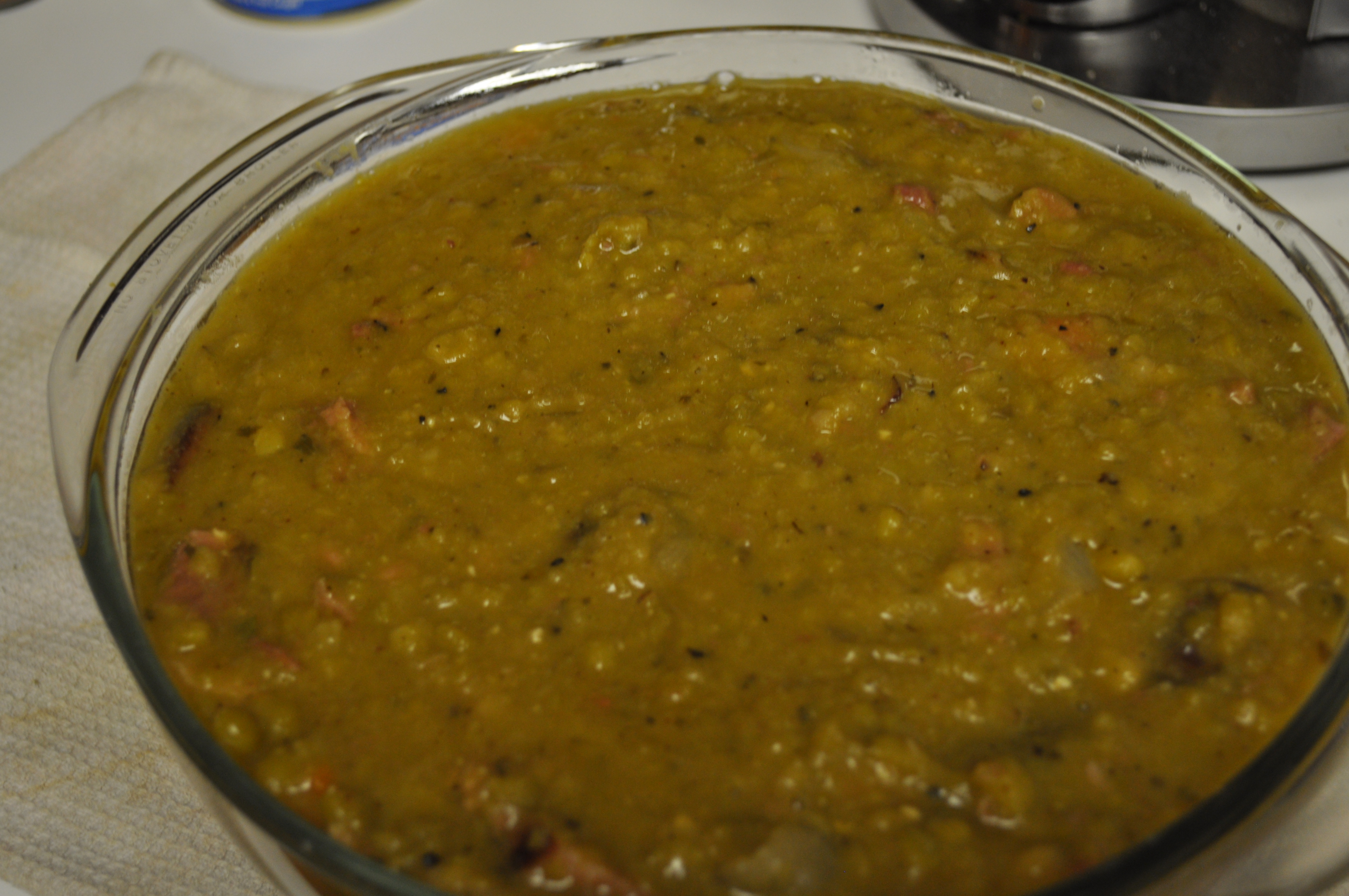 Comforting food made this weekend, like this split pea soup, so we can easily heat food while trying to deal with the weather.