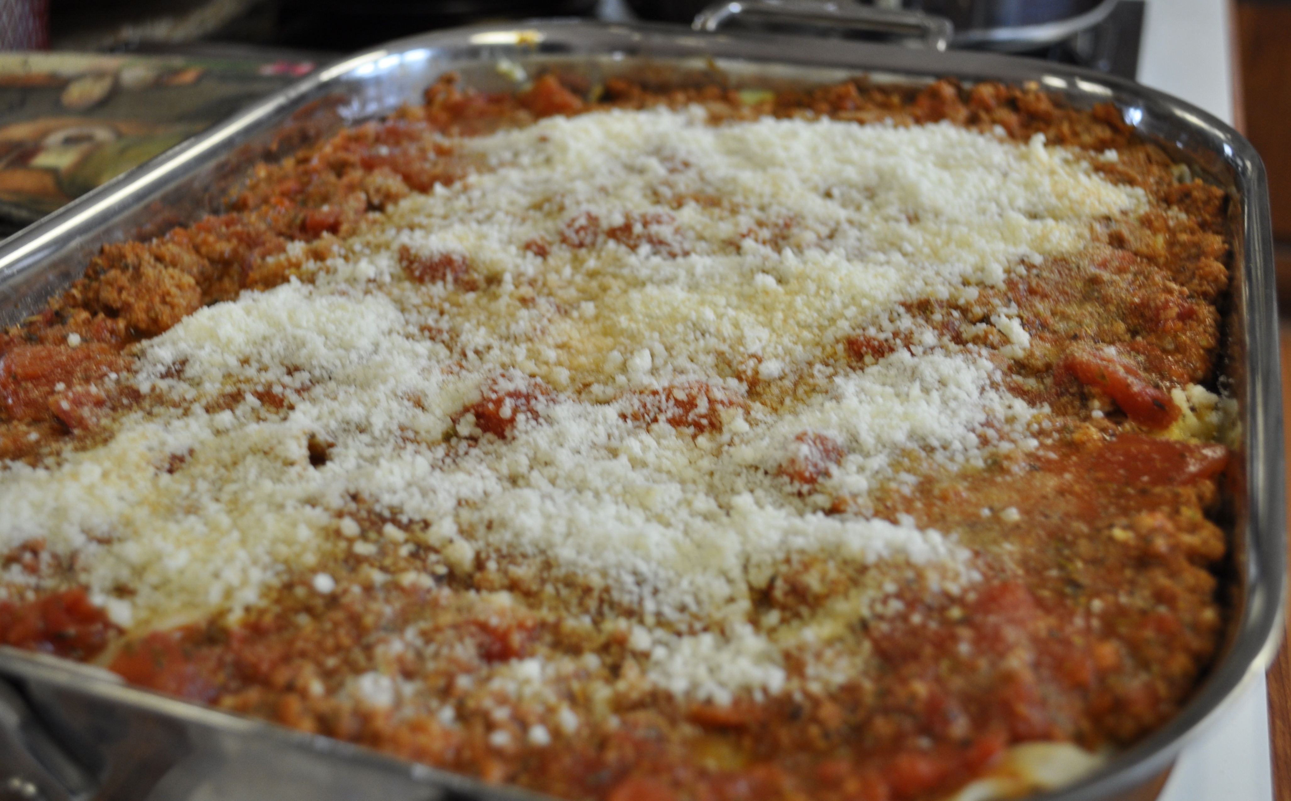 Today I did my not so frequent marathon to make lasagna. Using what I had here. Improvising. It still tasted awesome, even if I didn’t have ricotta in it.