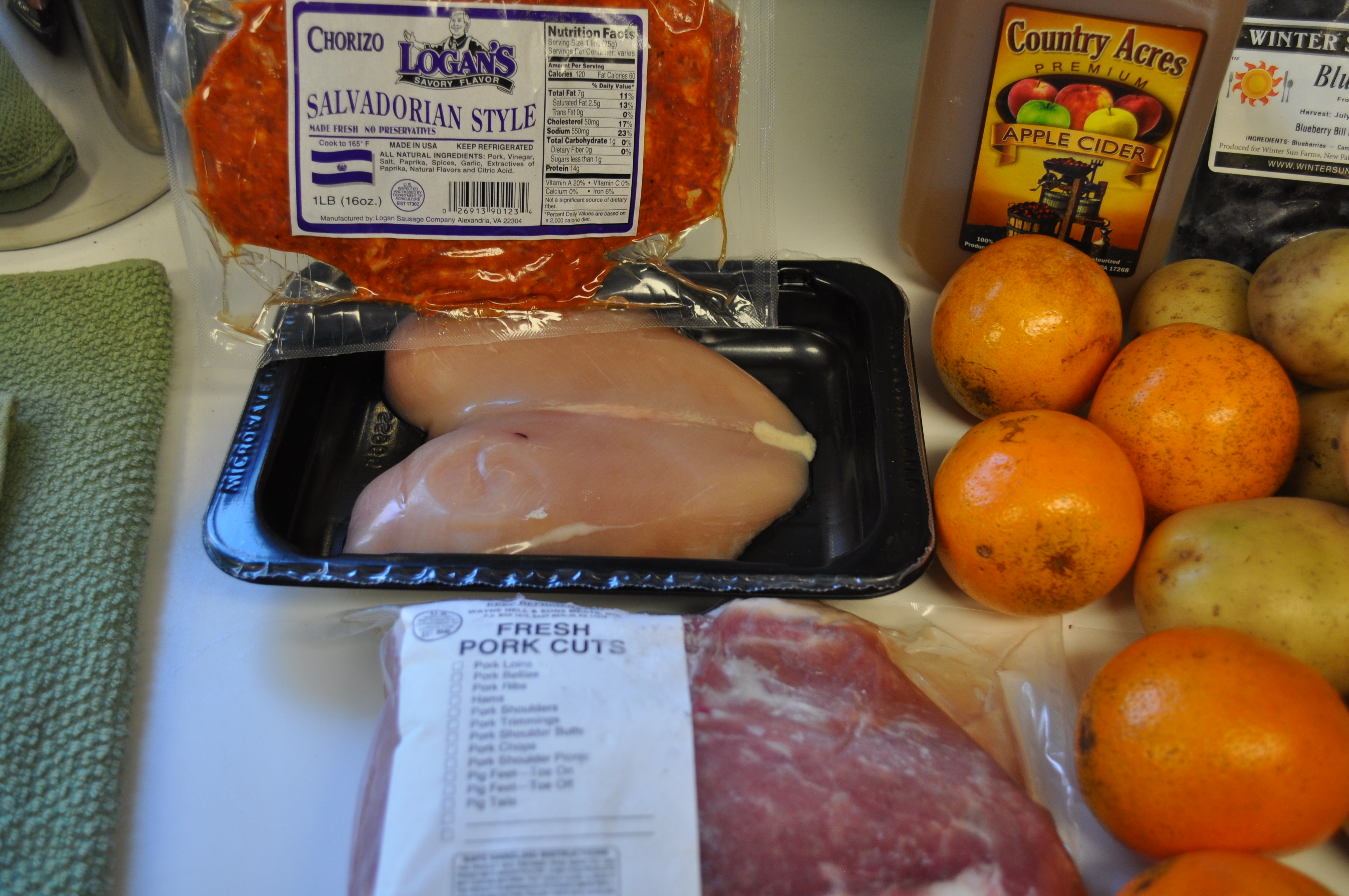 The pork roast and the apple cider. Will be dinner Friday night. Along with cole slaw. See below for my CSA basket that makes this dish possible.