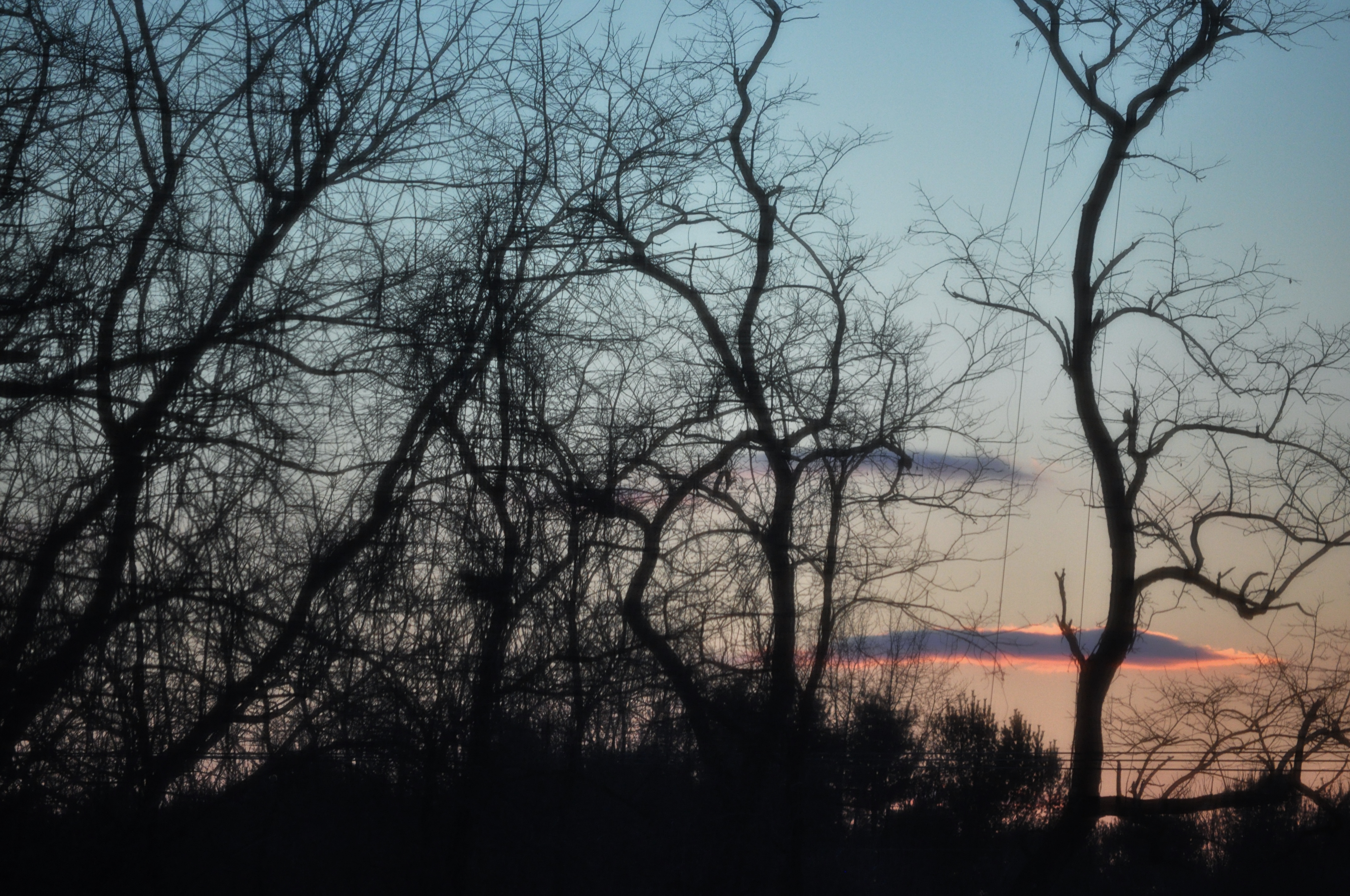 At the very top of our boundary tree, you can see the ropes where my husband attaches the extremely long wires to use for the lowest frequencies for his radio contacts. Thankfully, today, in the snow, we didn’t need that level of climbing, but we did want the trimming work done before the leaves start coming in. This work has been moved more than once due to weather, but today, they thought, we can do this.