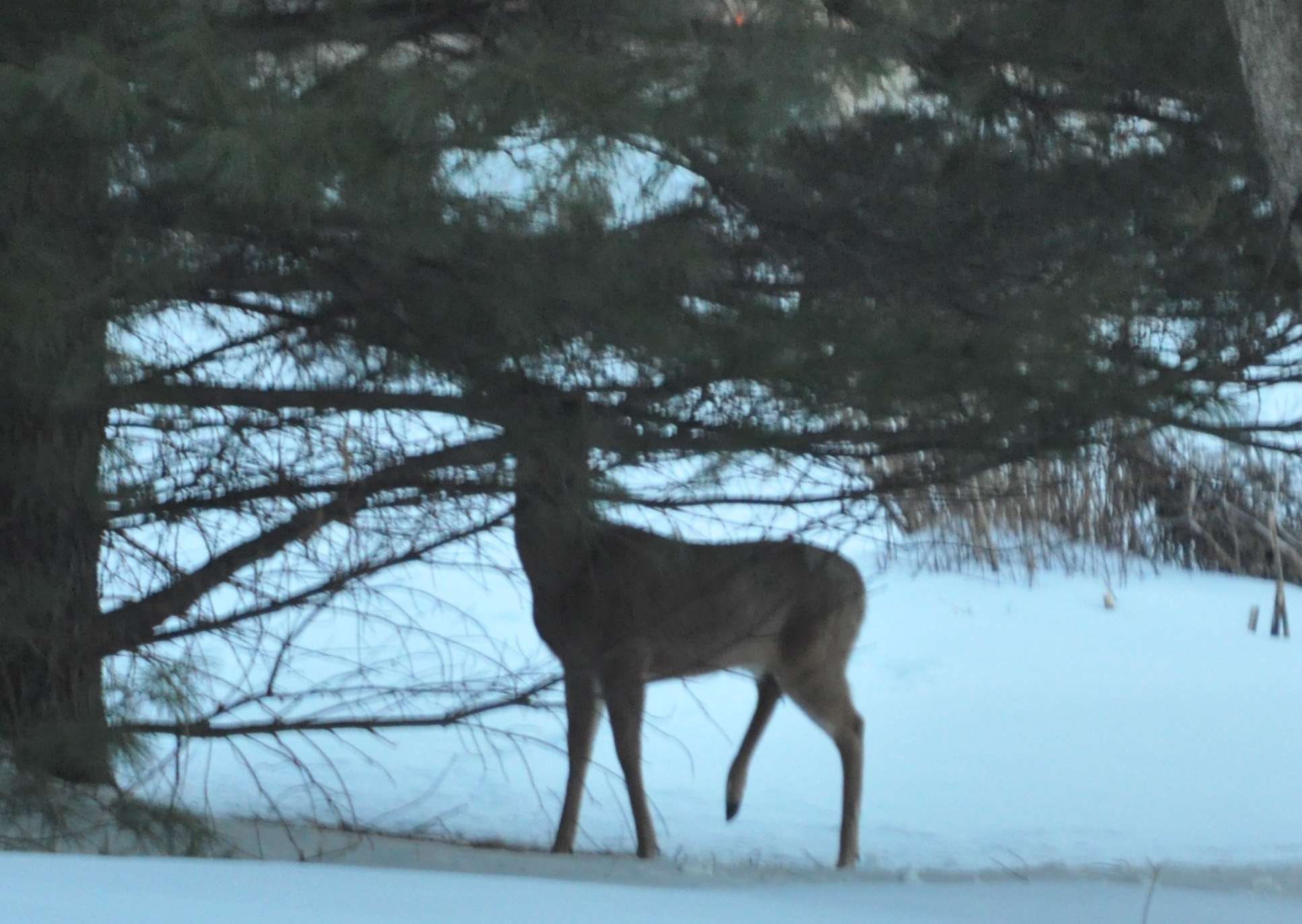 Yes, this one was crippled, and limping. Eating the white pines. Not their favorite food, but just about all that is out there these days. They are coming right up to the house at night.