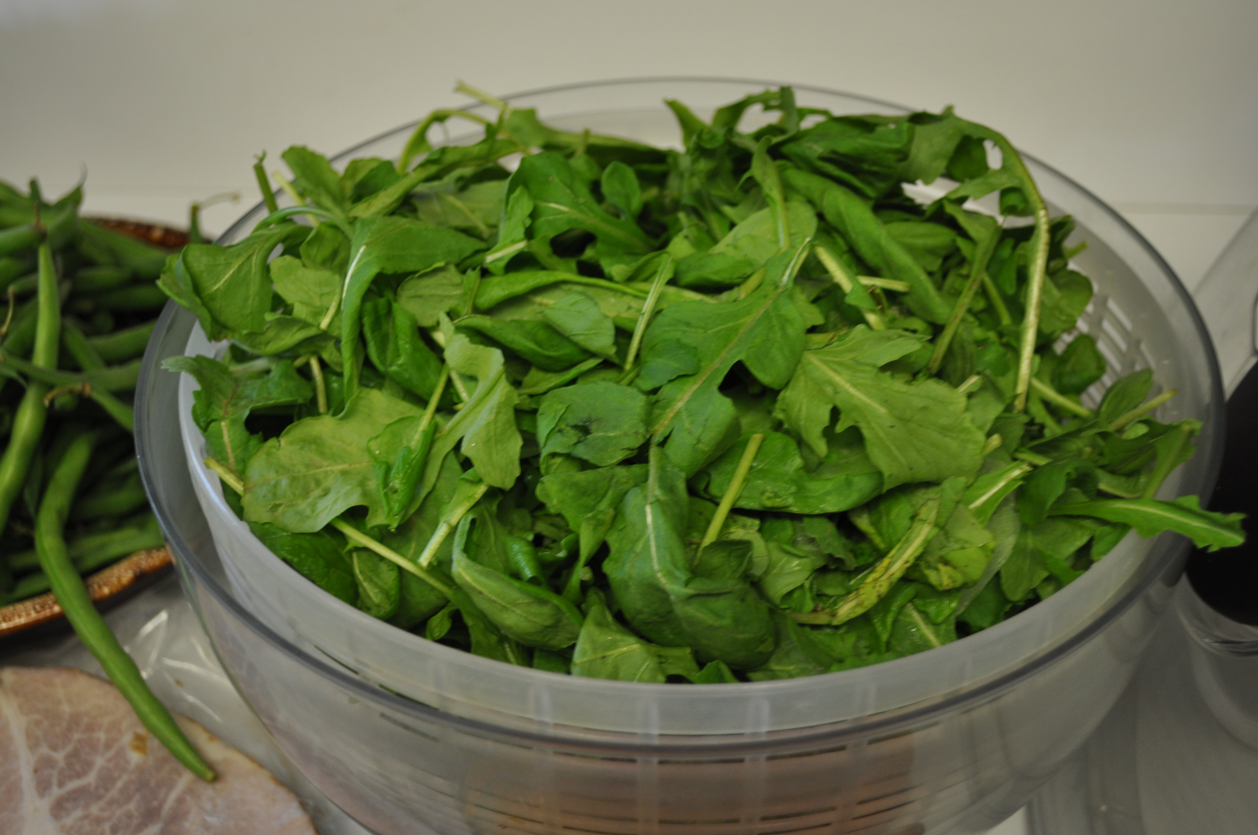 Compliments of our weekly food baskets. Which are changing slowly into springtime items. Like arugula.