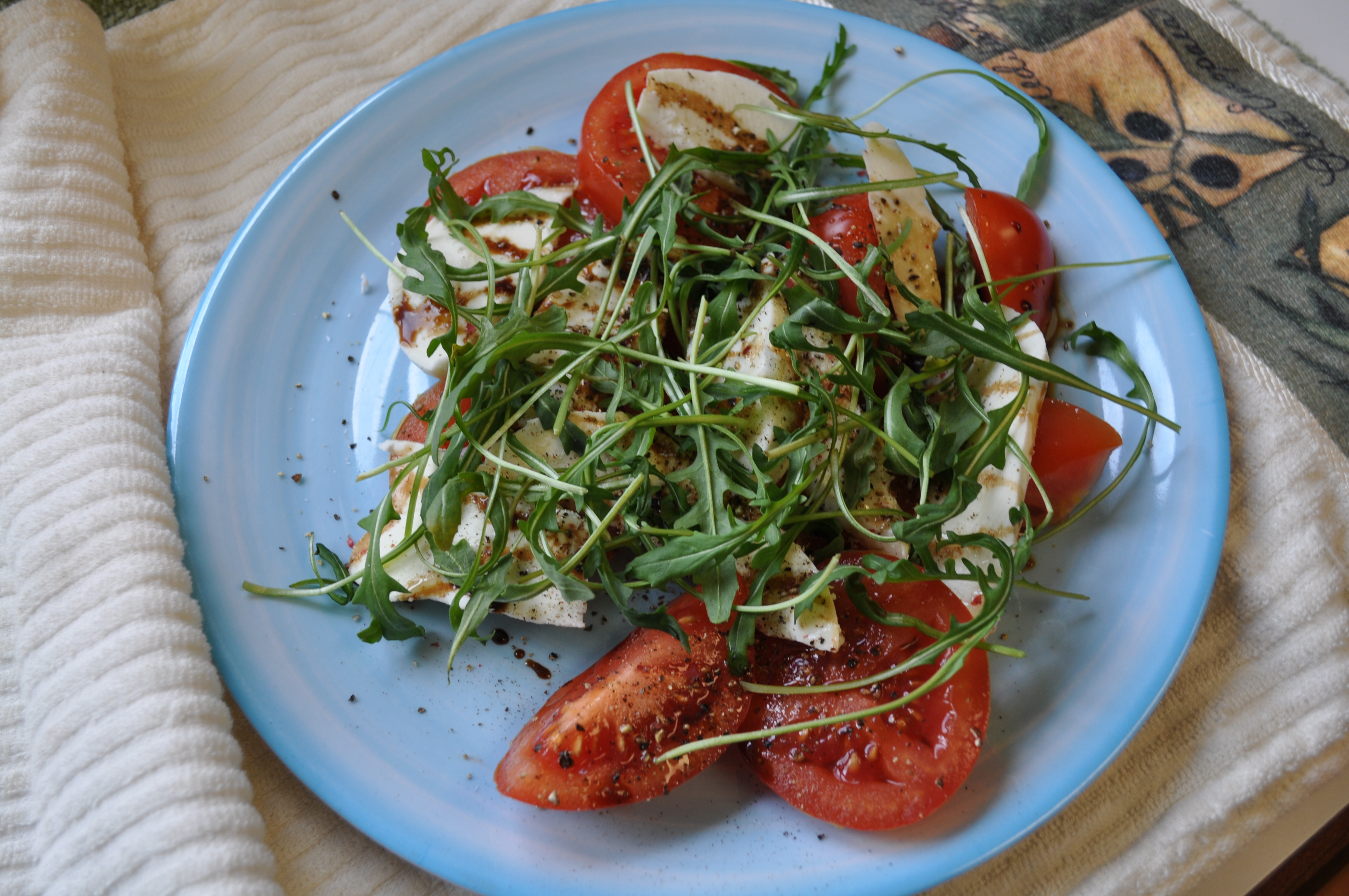 The baby arugula came in my weekly Lancaster Farm Fresh basket this week. It took the place of basil in my close-to-Caprese salad. The Hummingbird Farms hydroponic tomatoes were in my Friends and Farms basket. The mozzarella. Picked up at my last visit to Breezy Willow farm store on a Saturday morning when they are open.