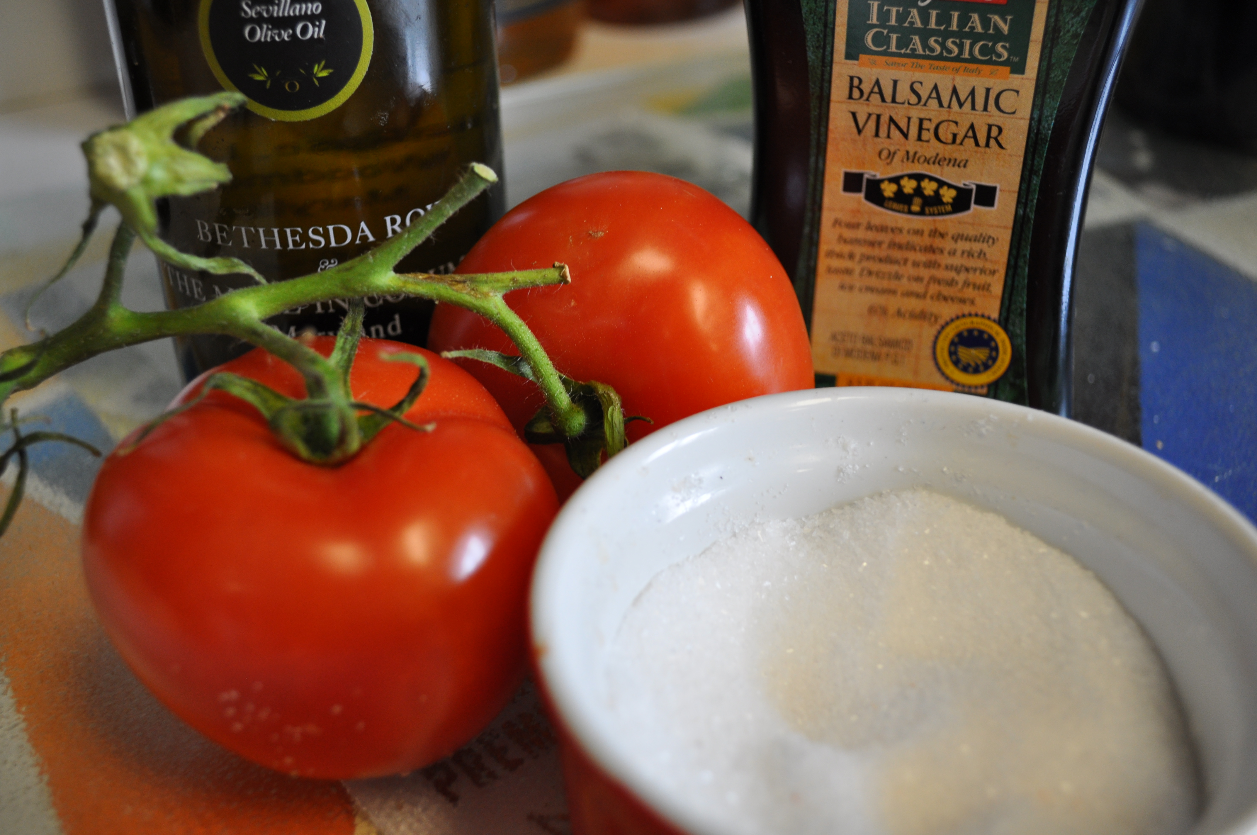 These tomatoes actually have taste. Not like my summer tomatoes, but much better than those weird cardboard tasting things in the stores. I used a drizzle of Secolari Olive Oil and some Wegmans balsamic. Salt and pepper to finish.
