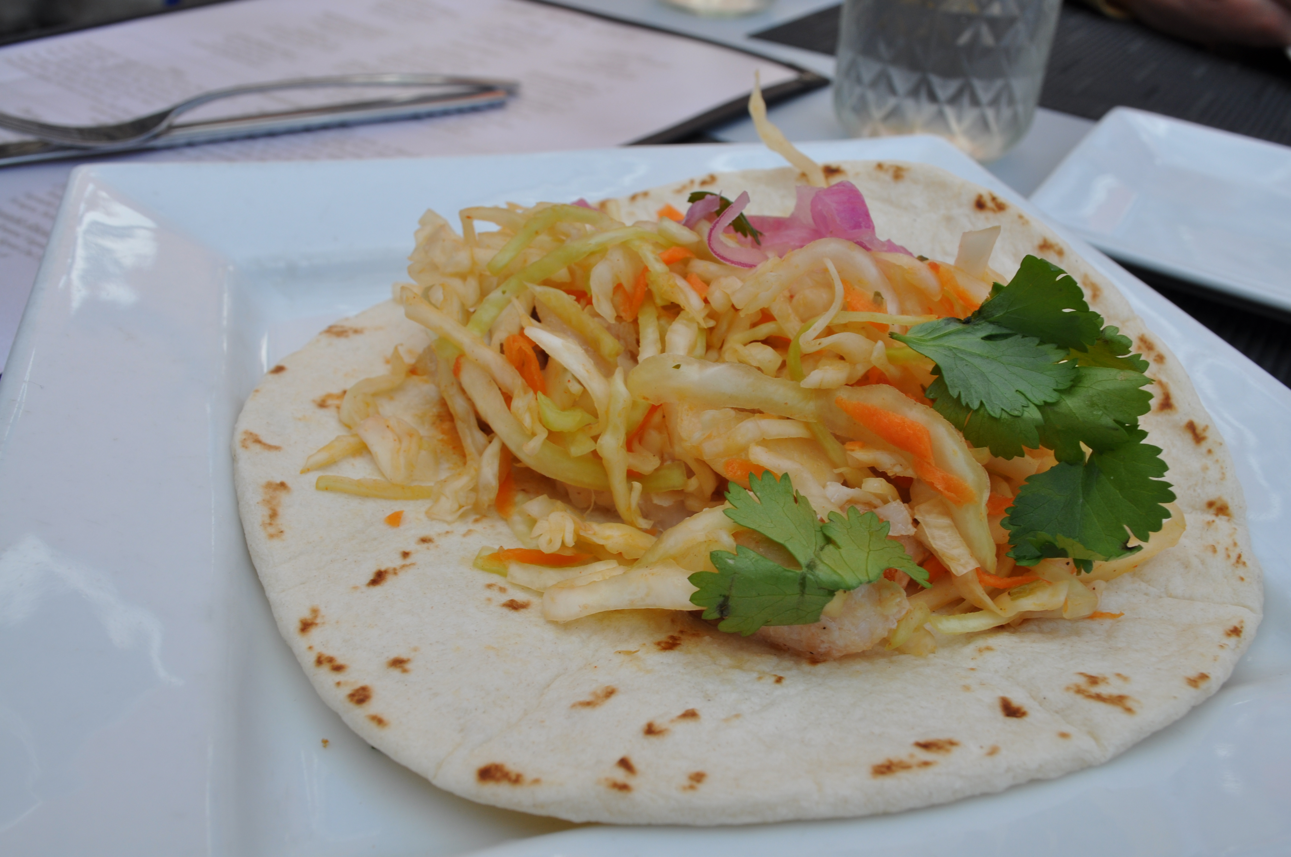 We started with rockfish tacos. One for each of us.