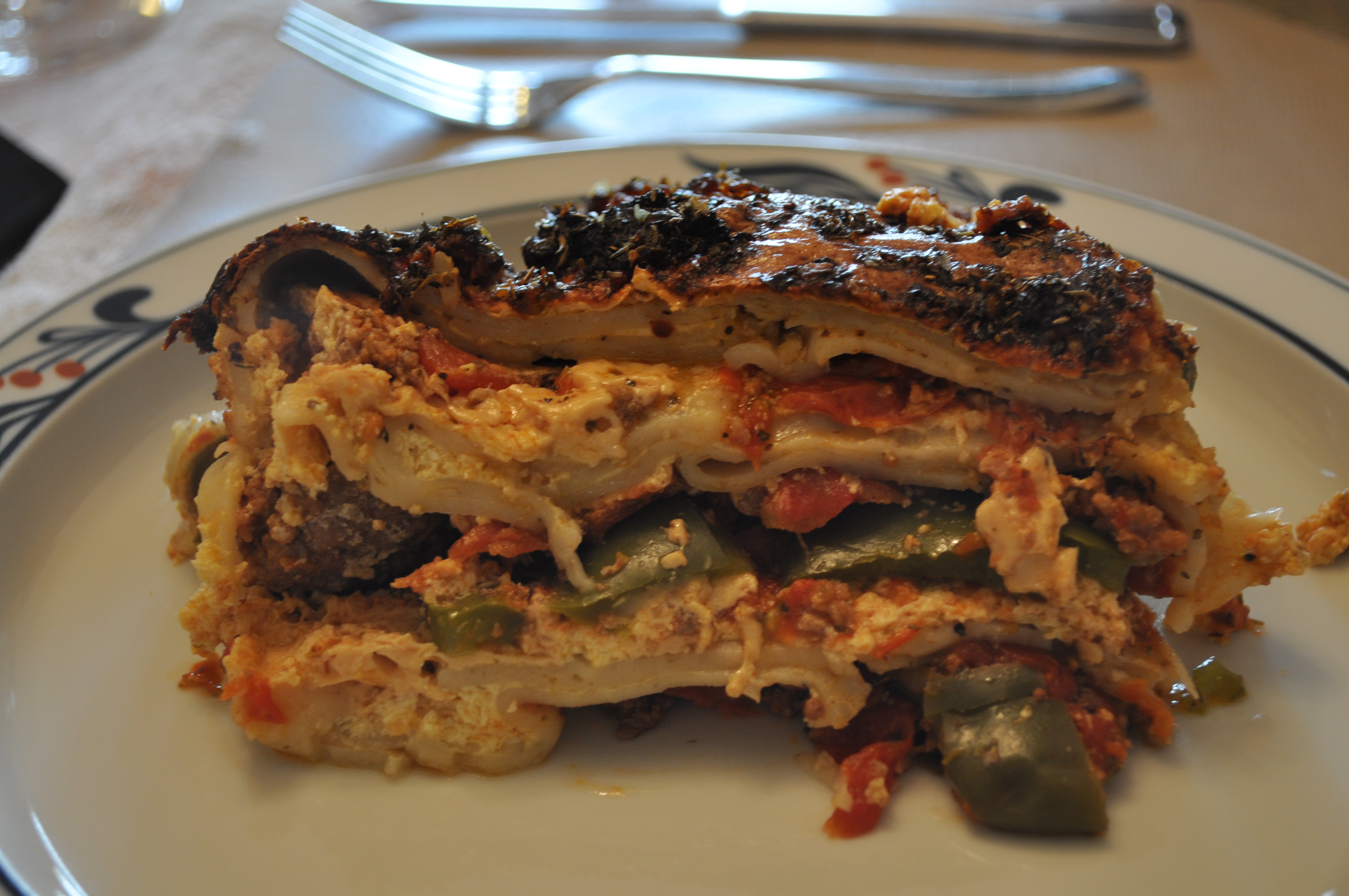 Tomatoes from my freezer. Peppers from the CSA. A slight tweak on the traditional lasagna.
