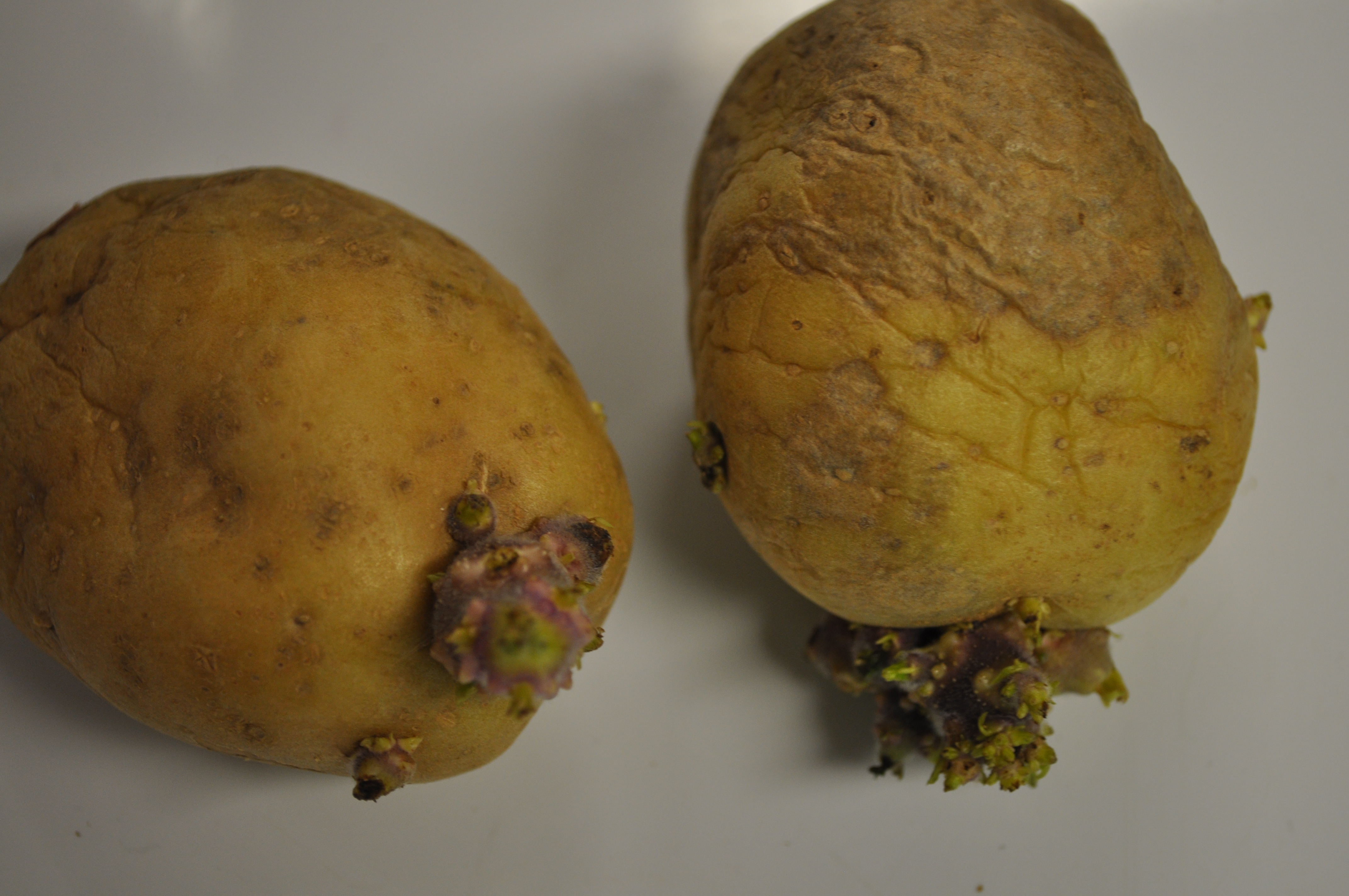 You start with this. Put them about one foot deep in a bucket or trash can (with holes drilled in the bottom for drainage). Keep adding soil as they grow. Dump them out when you are ready to harvest (once the foliage starts to die back). I put in about half a dozen potato pieces. Some are fingerlings. A couple are Yukon gold. I use CSA potatoes because they aren’t treated and they will sprout.