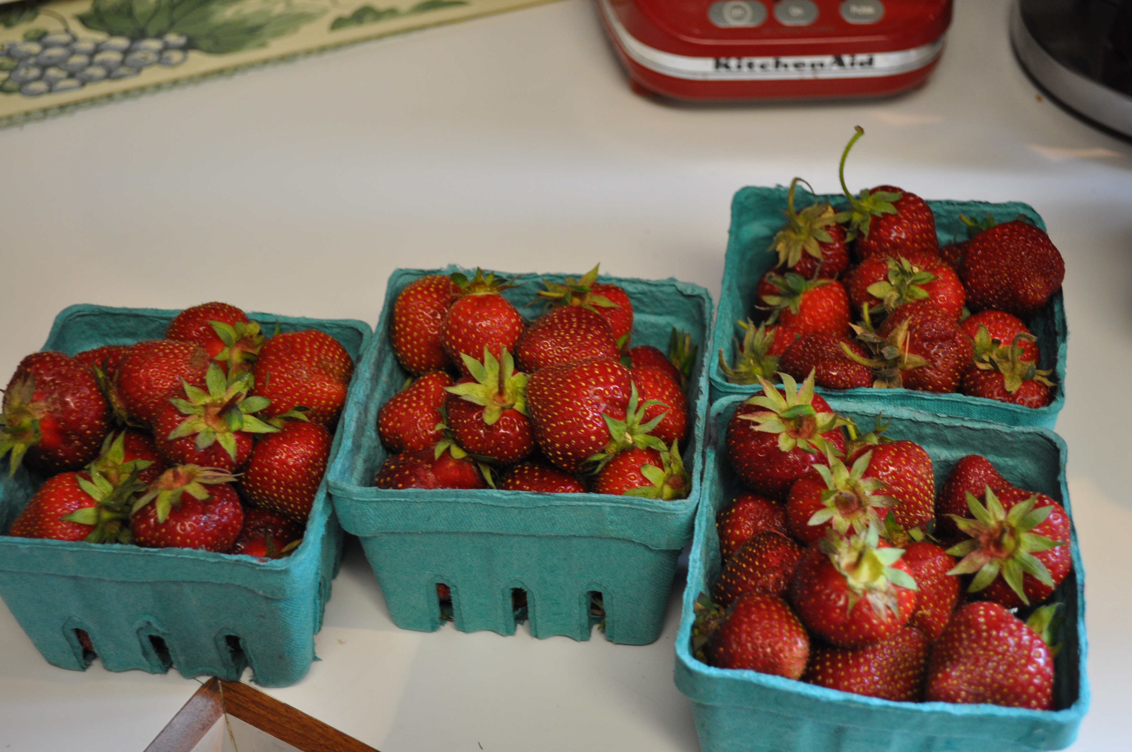 We got an email last week. It said “Surprise!” Fruit shares were starting a week early. Without any cost. Two pints of organic strawberries for all our fruit share members. That’s a lot of us in Columbia. I think we have 40 fruit shares at our pick up site.