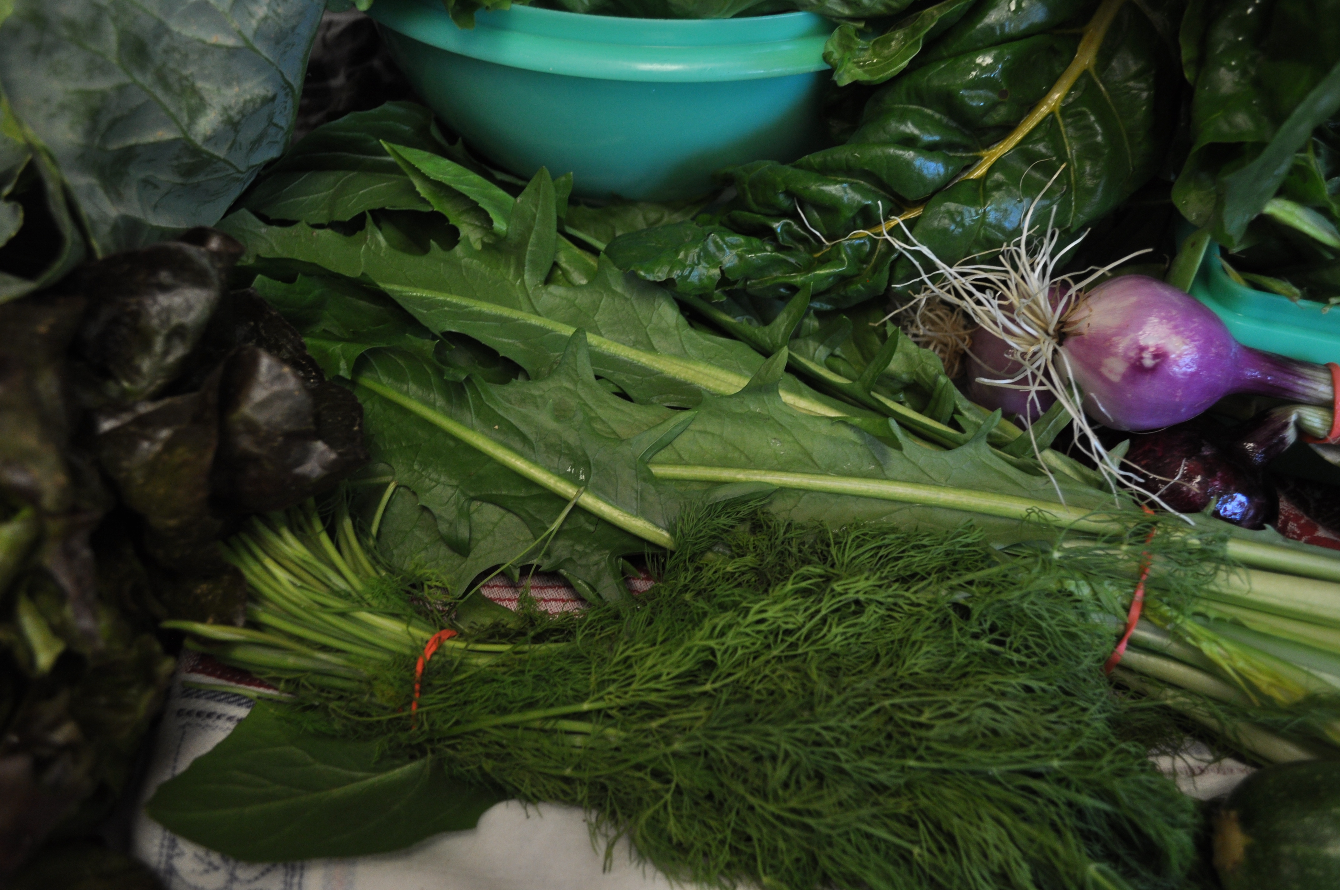 We are slowly transitioning into summer, with a mix of squash and beans, and many different greens.