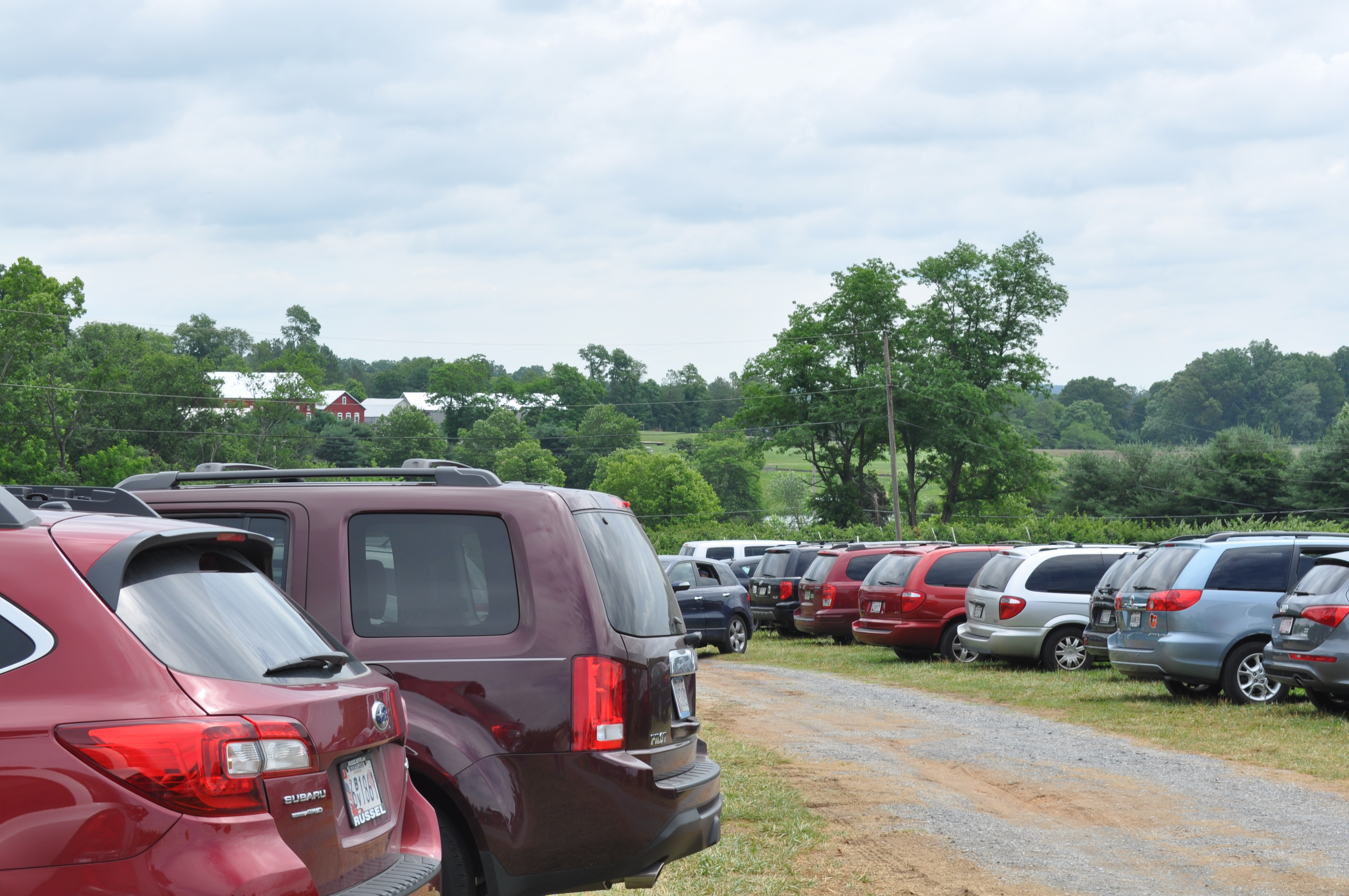 The parking area was full. Most people, though, were picking strawberries so the cherry trees were relatively quiet. I know it was the last day of school around here, but there were quite a few families out there.