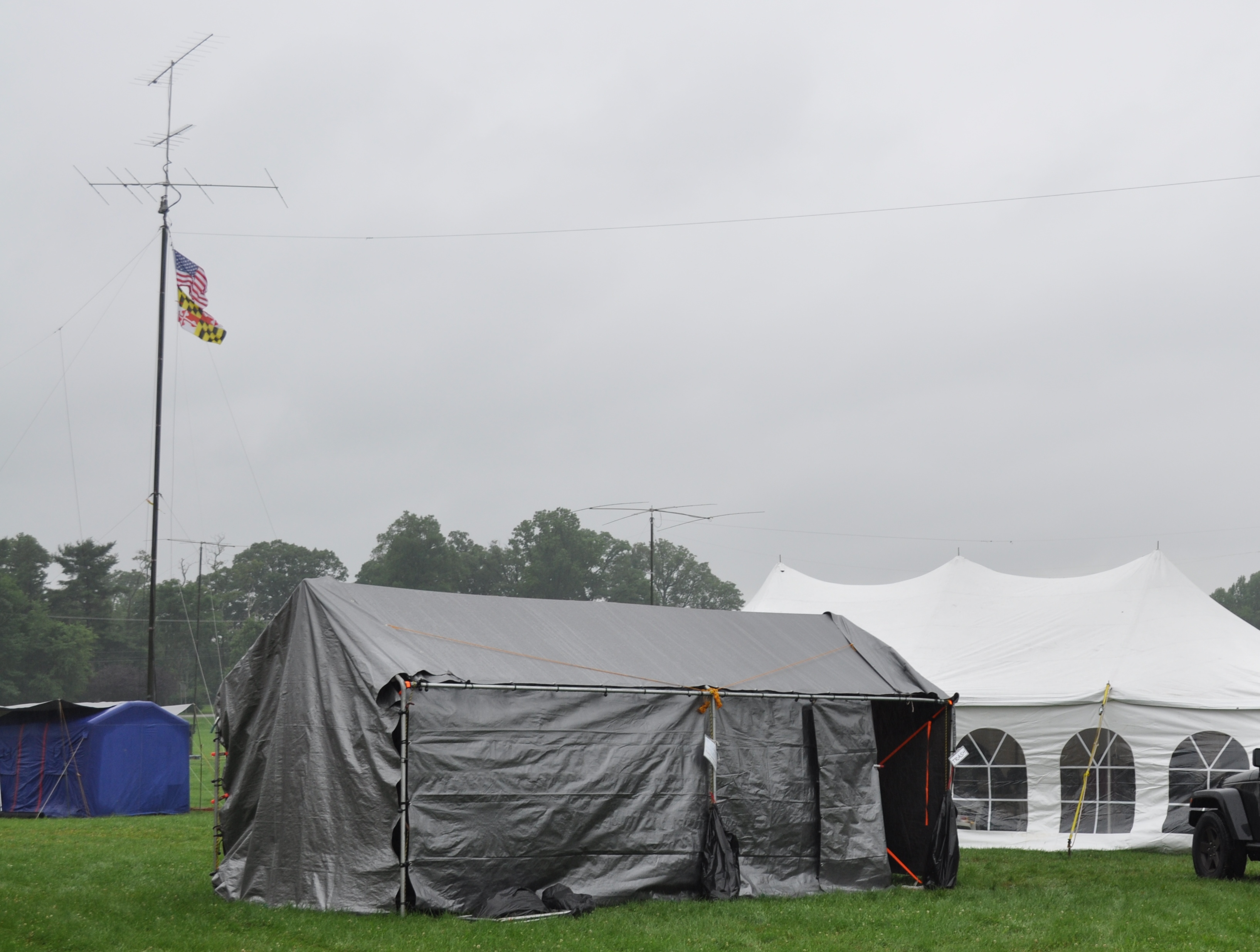 Set up time. At least the weather cooperated and it didn’t rain at all on us Friday as we put together another yearly effort in emergency management communications. The two local amateur radio clubs here in Howard County pair up. A first class public service and emergency support club, and an elite group of “contesters”, i.e. radio operators who try to make the most contacts in a fixed amount of time.
