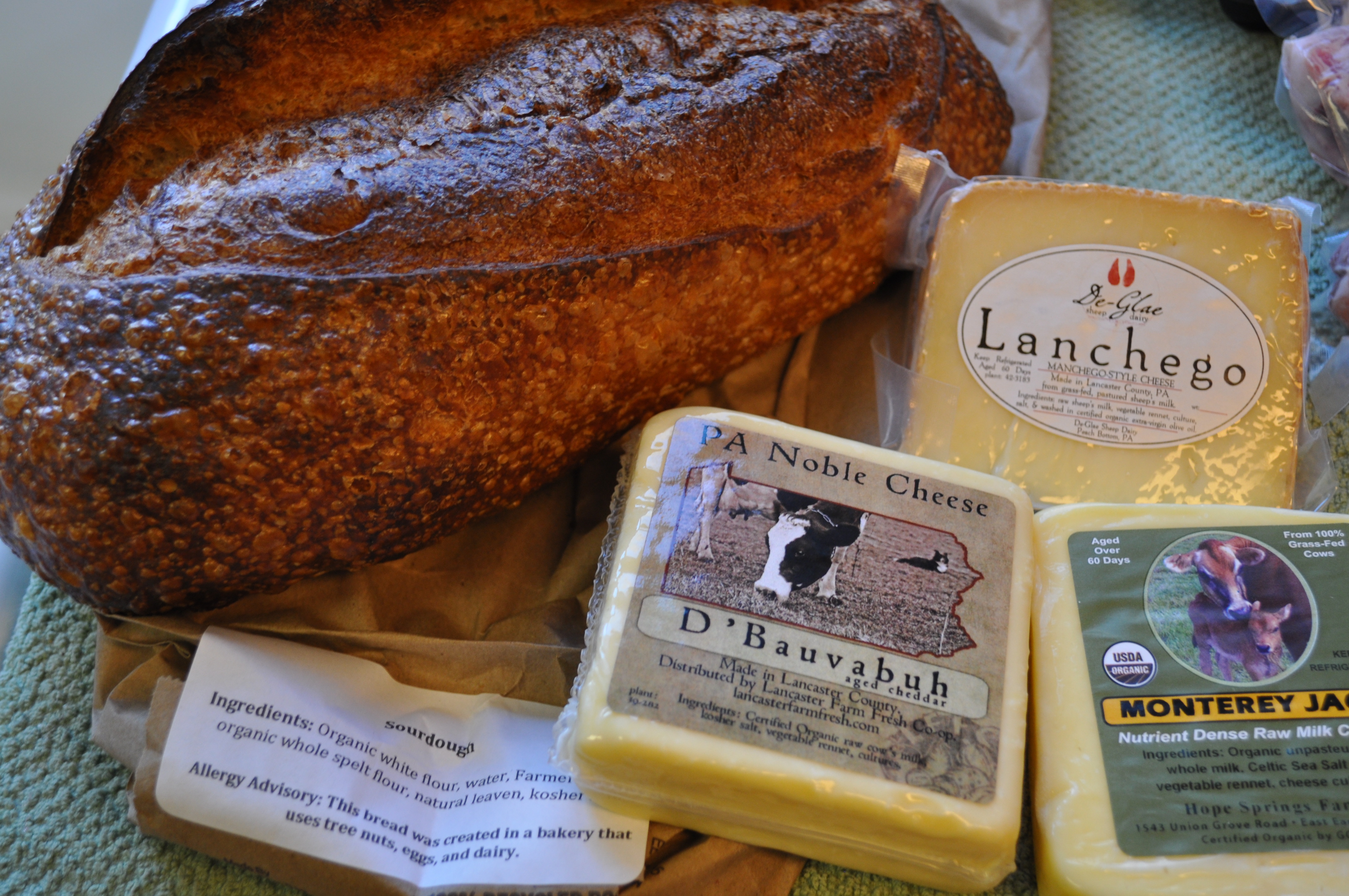 A big loaf of sourdough and three cheeses from my cheese share. I could live on that bread and cheese, and that tuna, and of course, what goes best with bread and cheese? Wine!
