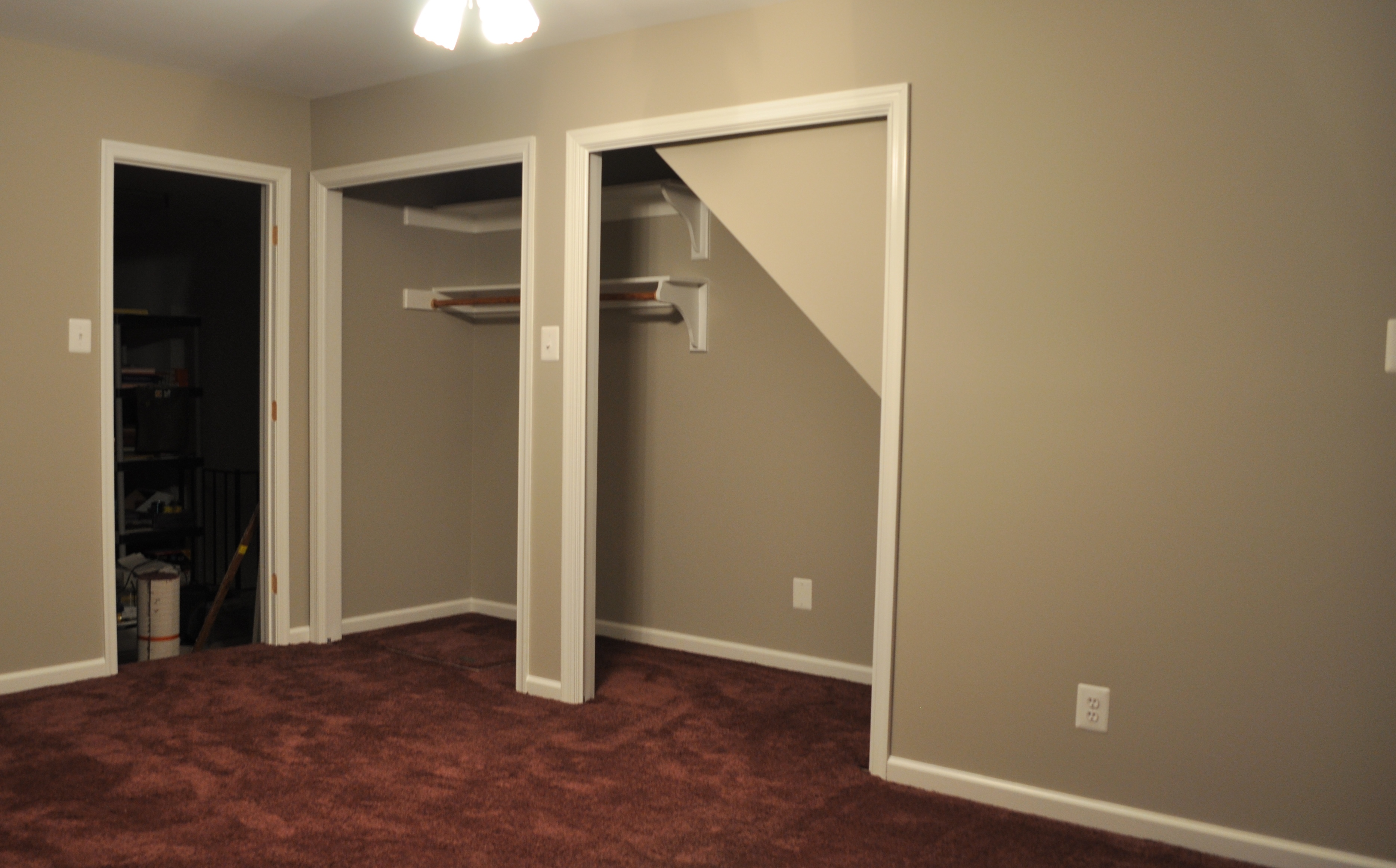 The study is done, except for drapes. The basement room damaged the most by the water leaking down the walls, is also finished, except for a new light fixture. The basement bathroom is coming along.