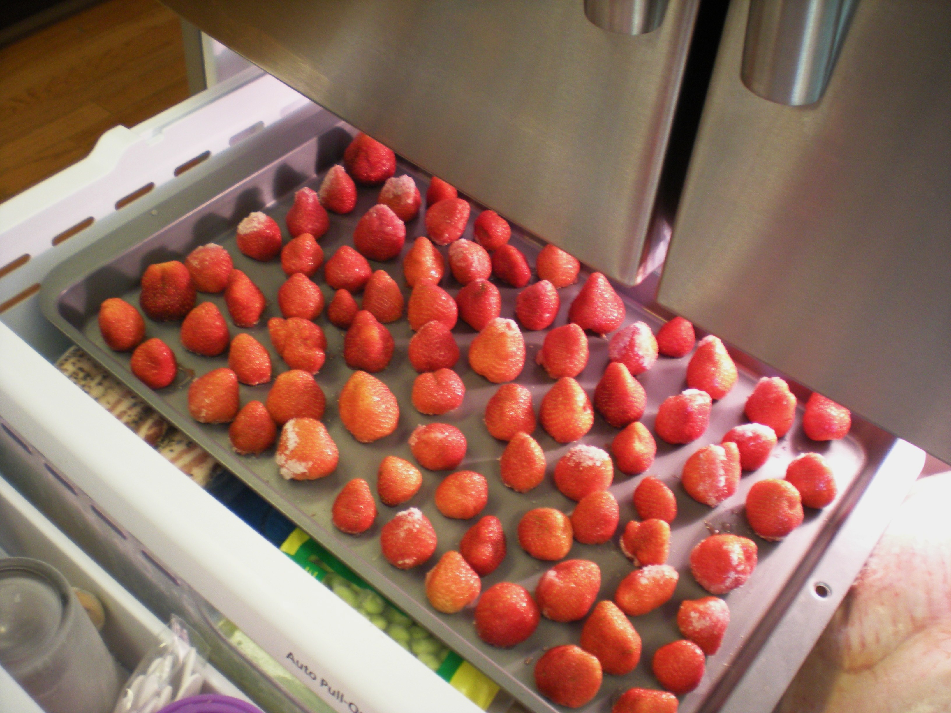 Just hull them. Clean them up a little. Flash freeze them and put them in small bags or containers in the freezer. Perfect to drop into lemonade or wine or a cocktail.