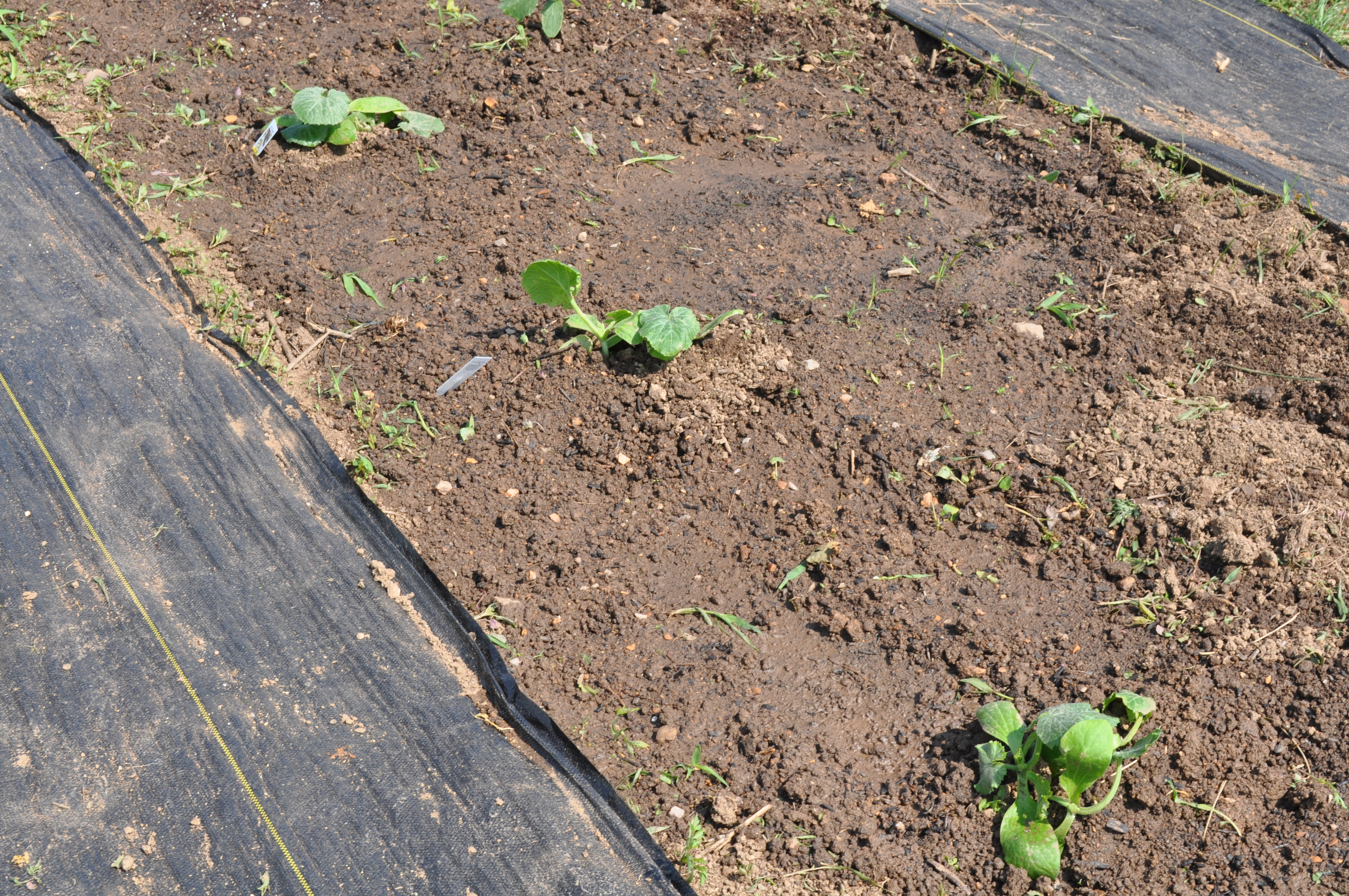 These three are zucchini. Above them is a grouping of three kinds of cucumbers. Pickling, slicing and bush crop. Today I put in two pepper plants at the very tip of that row. They are yellow sweet peppers.