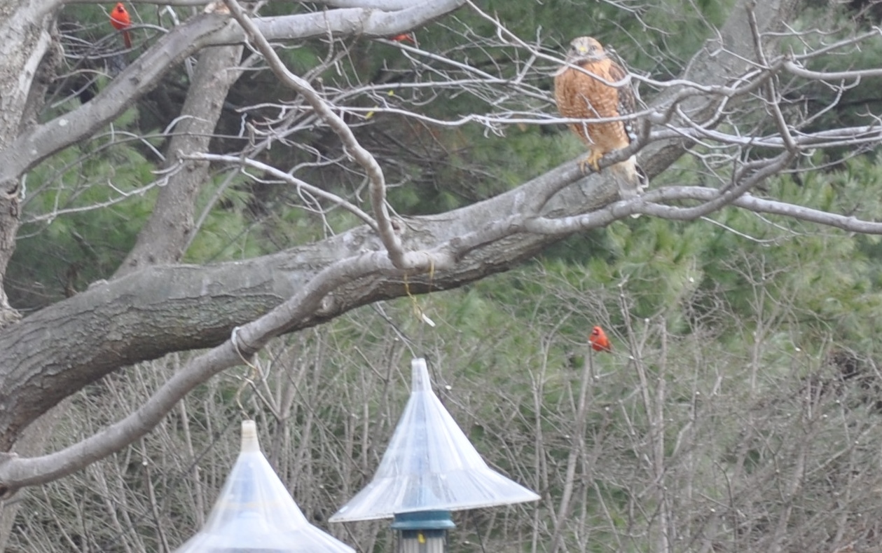 Other than car repairs, house painting, and bird watching, we seem to be rather settled in for winter. Anyone want to guess whether our new resident hawk will bother the cardinals in the yard?