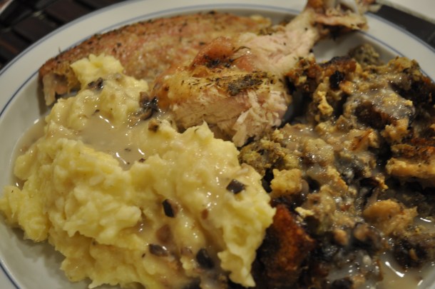 That one 14 pound bird will be yielding 16 meals for the two of us. Not a bad return on investment. Besides, who gets tired of turkey? Not us.