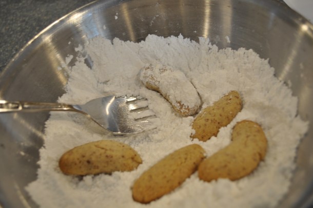 Fragile. Fresh from baking, and dredged in confectioner’s sugar mixed with vanilla sugar, these melt-in-our-mouth morsels are a memory of cookies my mom used to make. My paternal grandmother was born in Austria. These cookies are something special to me, as I pay tribute to my heritage.