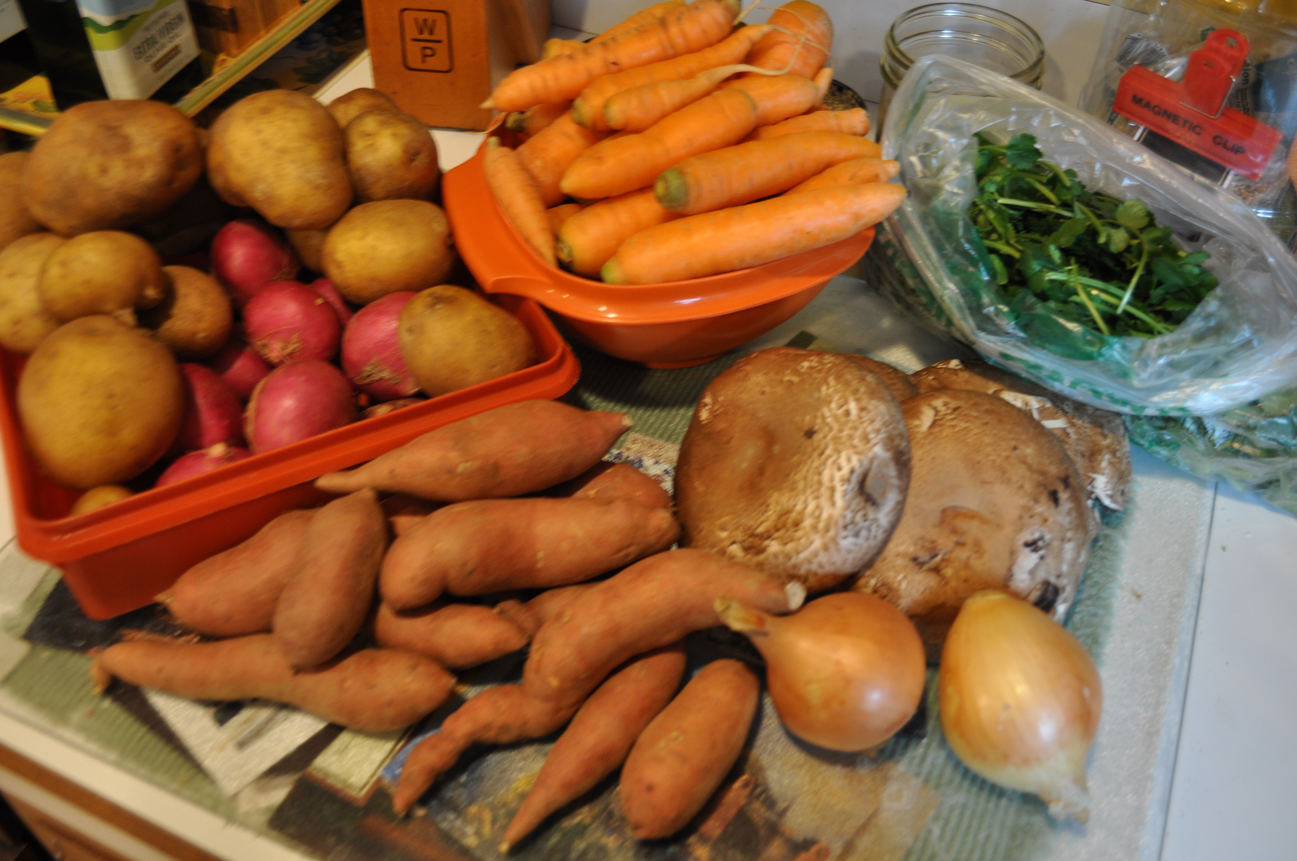 Here’s a quick way to make this. You can then dump it all over those winter root vegetables you get from your CSA. Like these.