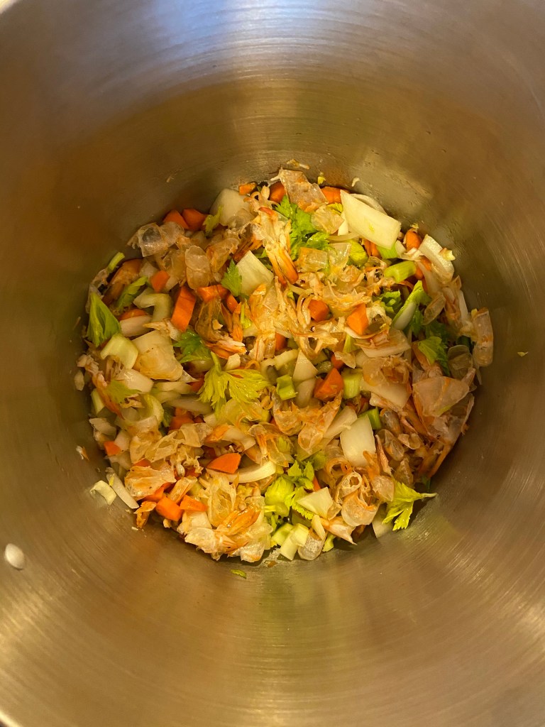 We can’t see the depth of shrimp, scallops, mussels and cod in the bowl. Make no mistake.This was one amazingly satisfying meal. Fun to do while we hang out here at the house.
