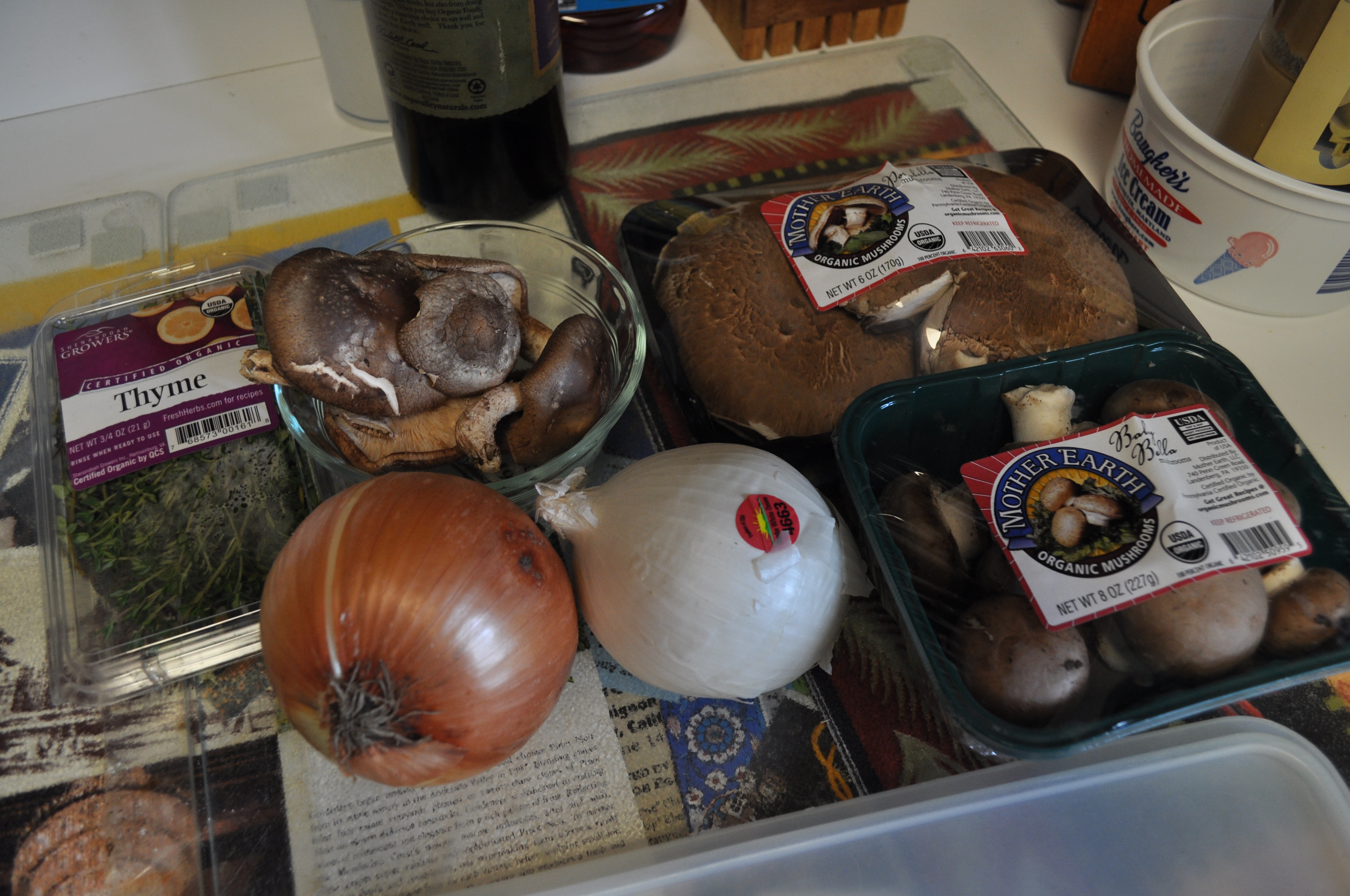 Cremini mushrooms. Shiitake mushrooms. Portabella mushrooms. Saved for a week to make the soup. Mushrooms are in season. And, so flavorful.