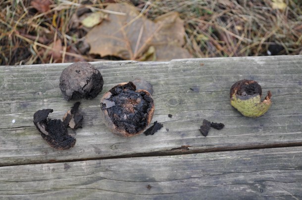 They have a very different taste. They make wonderful cookies. I will be putting these away in the freezer for a few weeks until I do the Christmas cookies. If you have seen black walnuts on roadsides or in fields, you know how hard they are to crack. Plus, the stain on the outer parts of the nut will take weeks to fade from your skin. They are all over the conservancy. I am amazed at how the squirrels manage to get into them.