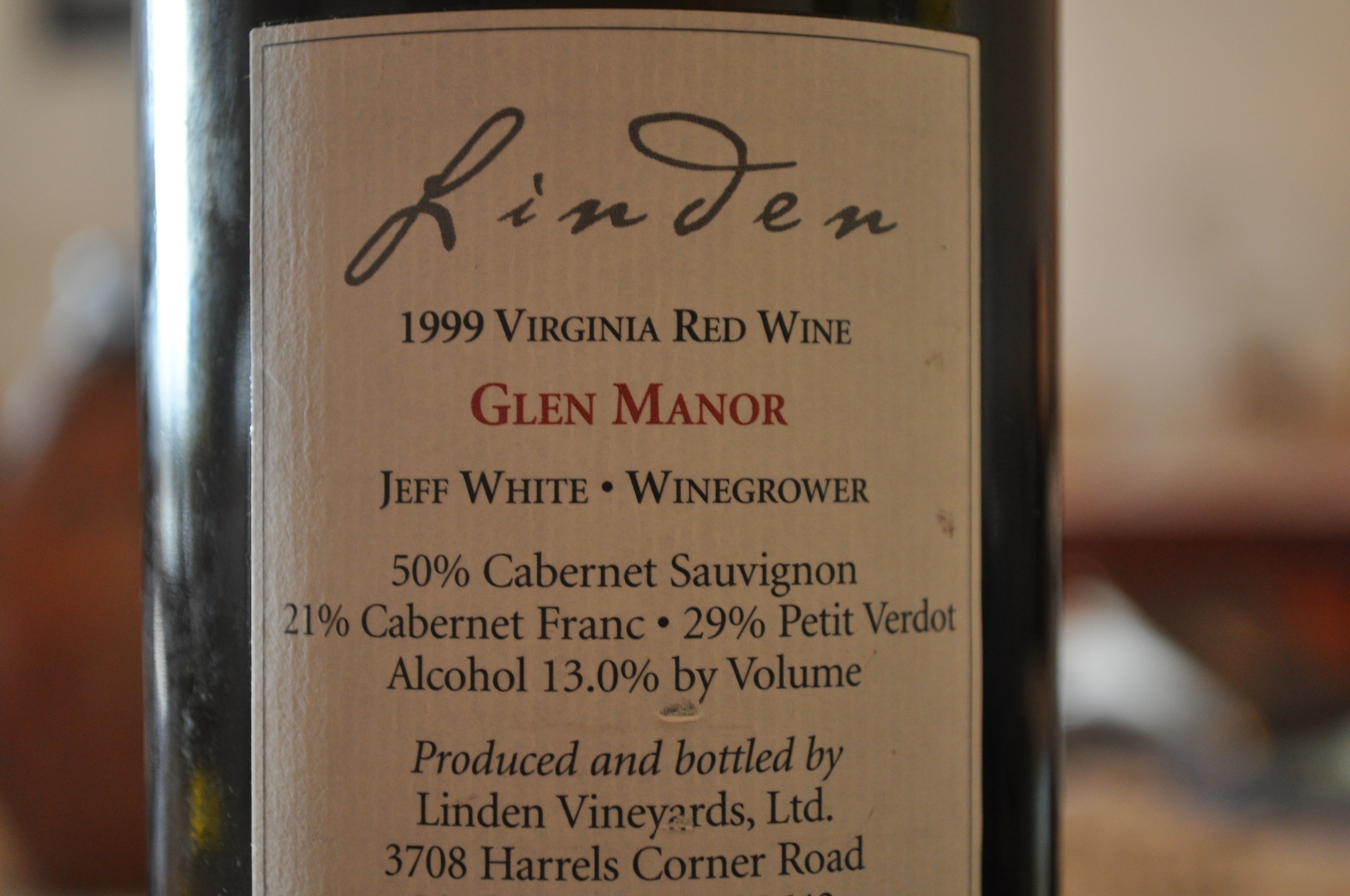 RdV and Linden. Ten years old. Both heavily Merlot. Both absolutely stunning. The more we delve into the differences in styles, and in the ability to age, we come to this conclusion. Good Virginia wines age very well. They don’t have the fruit forward punch of California wines, or the austere depth of Bordeaux. They have a balance which allows them to age gracefully.