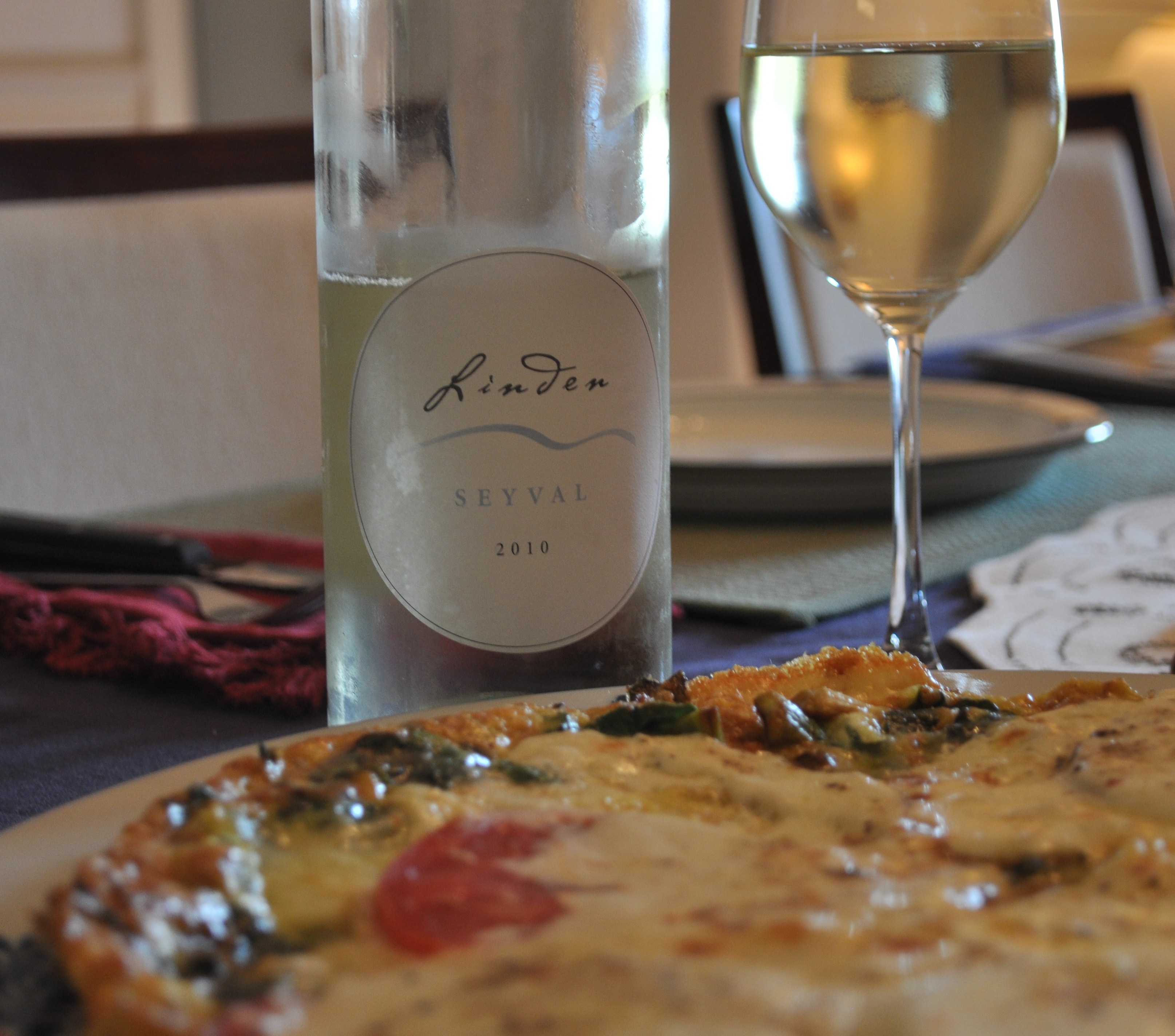 Finished off and served with a 2010 Linden Seyval, a hybrid grape that has a citrusy taste. This wine, well balanced and relatively low in alchol, at 12.7%, went well with the frittata, and cut through that richness of the mozzarella. The greenhouse tomato had that hint of acid, and actually tasted like tomato. A promise of what we will be getting in just a few weeks from my garden.
